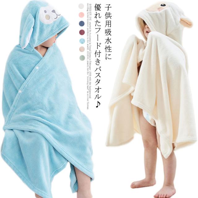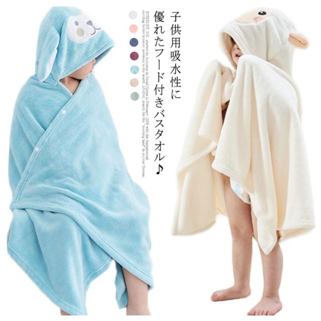 【送料無料】バスタオル フード付き ベビーバスローブ バスローブ キッズ ベビー 着るタオル バスタオル パジャマ 湯上り 軽量 かわいい タオル 男の子 女の子 プール 柔らか ふわふわ 水遊び 海 お風呂上り ボタン付き プレゼント 出産祝い 70*140cm
