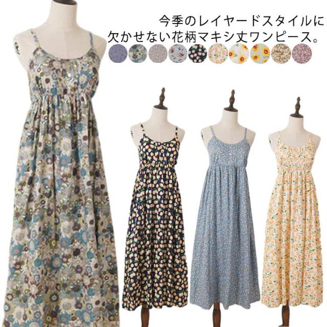 キャミソールワンピース 花柄ワンピース 夏 リゾートワンピース マキシワンピース ロングワンピース 花柄 プリントワンピース マキシ丈 ロング丈 コットン フレアワンピース ノースリーブ Aライン おしゃれ かわいい 送料無料