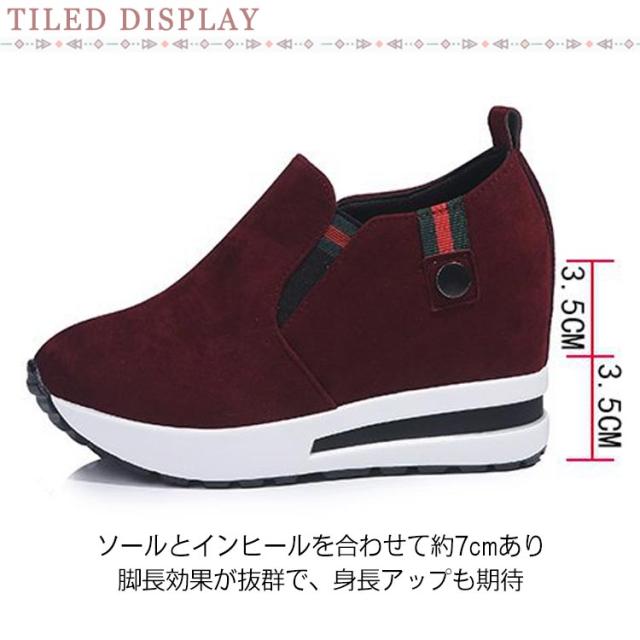 | 脱ぎ履きしやすくて、歩き心地もとっても楽ちんのスニーカーです。 カジュアルさ・快適さはそのままに、「こなれ感」のあるデザインも人気のPOINT。 ソールとインヒールを合わせて約7cmあり、脚長効果が抜群で、身長アップも期待。 厚底なのに軽量で疲れにくいので、通勤や通学などにも最適です。 スポーツ・散歩・旅行・お出かけなどいろんなシーンで大活躍♪ | |