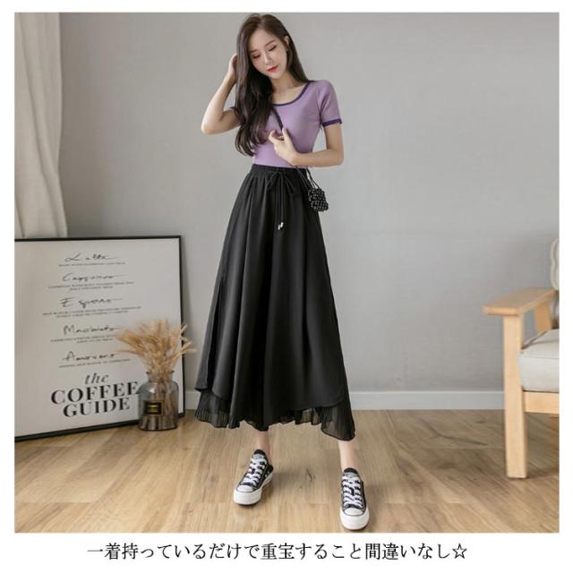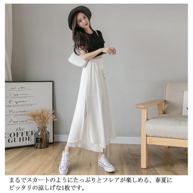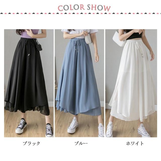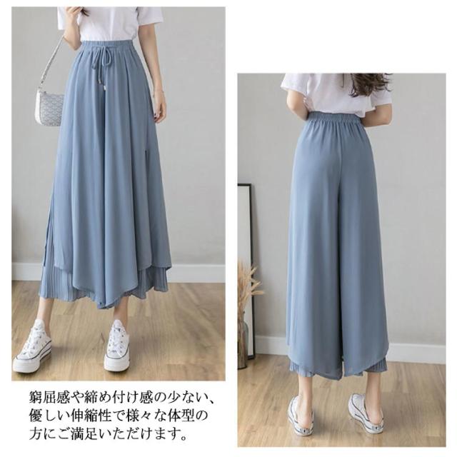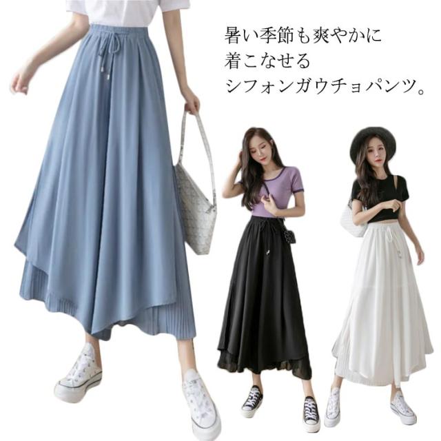 ガウチョ レディース ワイドパンツ シフォン ガウチョパンツ スカーチョ フレアパンツ 夏服 ウエストゴム 体系カバー 薄手 涼しい 魅力的 エレガント ふんわり サイズ豊富 カラー豊富