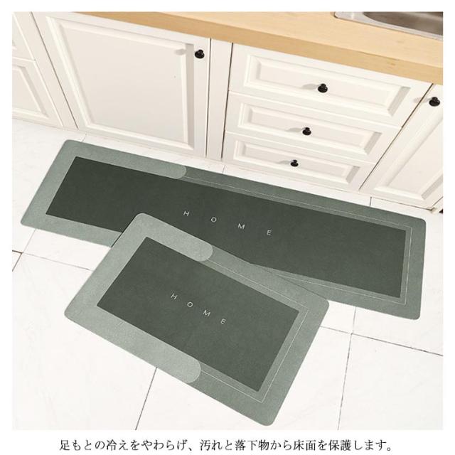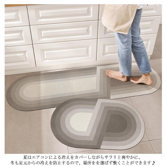 | サラリと優しい踏み心地、年中快適なキッチンマット 足もとの冷えをやわらげ、汚れと落下物から床面を保護します。 4層構造のため吸水性・クッション性・滑り止め効果は優れる。 ご家庭で丸洗いが可能なのでキッチンでの使用にもピッタリ!いつも清潔に保てます。 夏はエアコンによる冷えをカバーしながらサラリと爽やかに、冬も足元からの冷えを防止するので、場所をを選ばず敷くことができます♪ | |