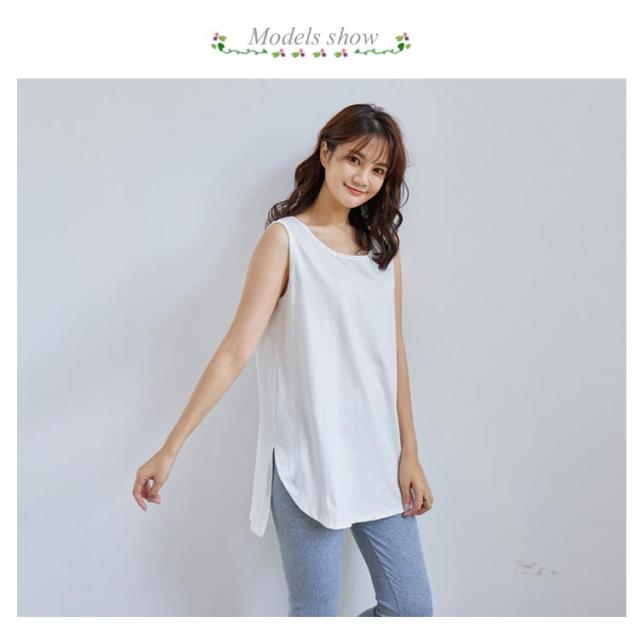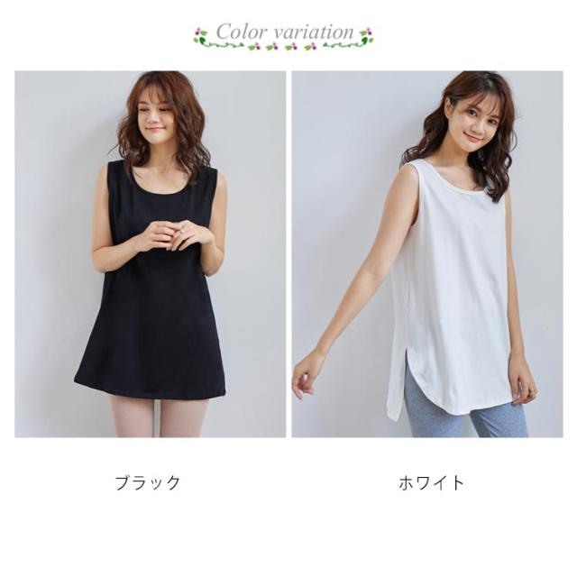 タンクトップ ロングタンクトップ ノースリーブ インナー サイドスリット入り ロング ロング丈 レイヤード tシャツ スリット レイヤード トップス レディース 綿 無地 白 黒 ラウンド裾 つけ裾 ヨガ スポーツ ゆったり 送料無料