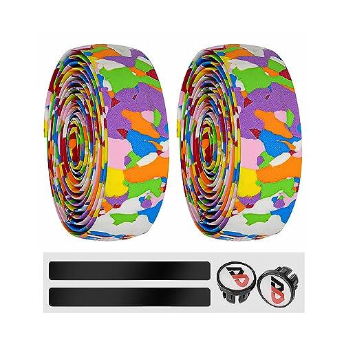 自転車 バーテープ バーテープ ロードバイクロードバーテープ 2ロール 左右セット滑り止め 通気性 衝撃吸収 エンドキャップつき (カラー)