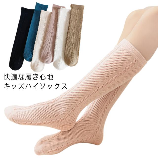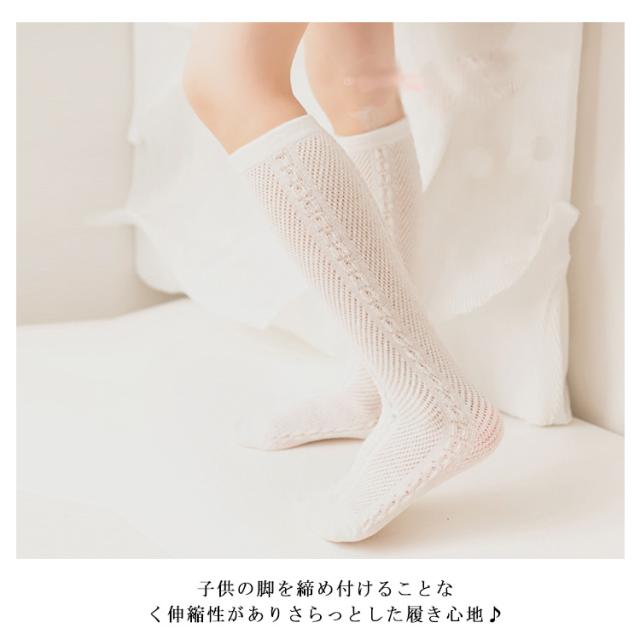 【送料無料】ハイソックス 女の子 靴下 キッズ ニーハイソックス 無地 綿 メッシュ おしゃれ キュート 可愛い ソックス 春 夏 秋 こども ガールズ 子供 綿 幼稚園 小学生 卒園式 入学式 フォーマル 冷房対策 虫対策 ホワイト ブラック ギフト プレゼント