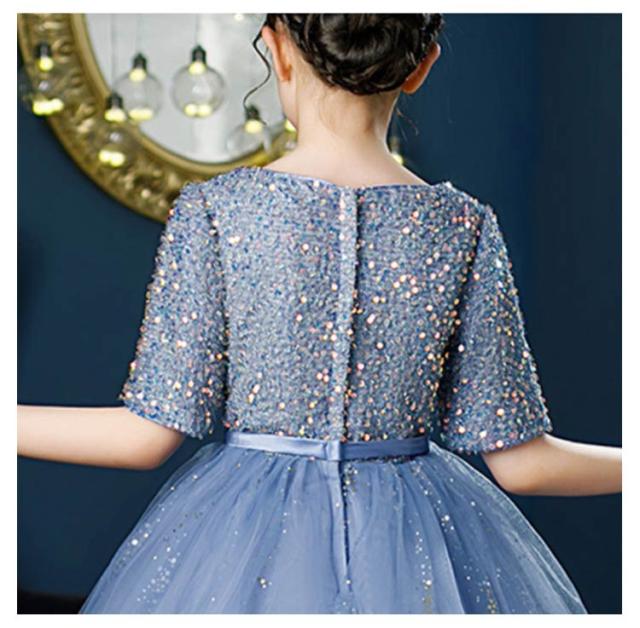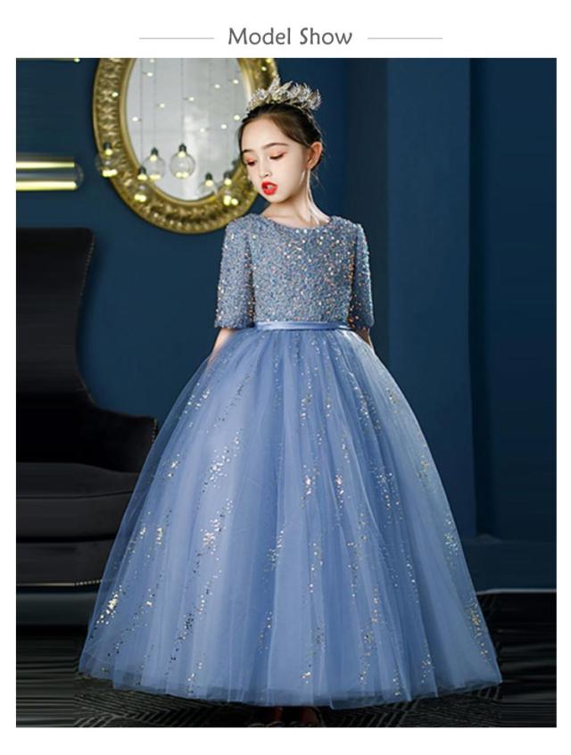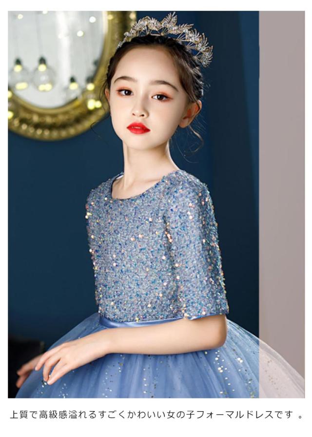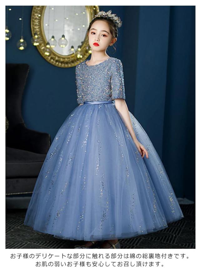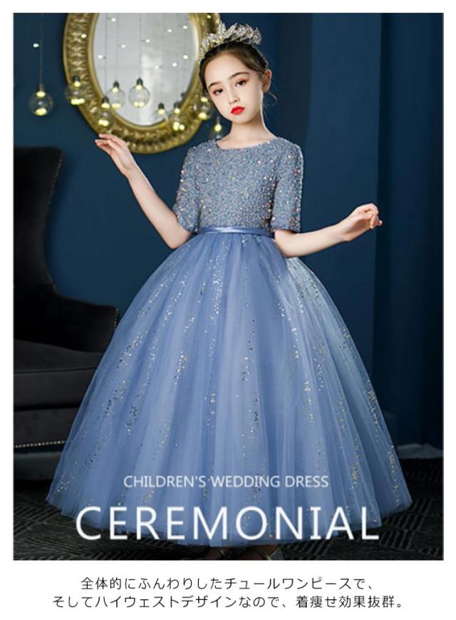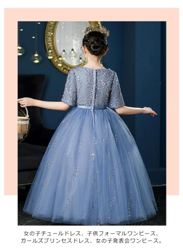 送料無料 子供ドレス キッズドレス 女の子 フォーマル発表会 結婚式 半袖 ワンピース 子ども ドレス 子供服 ドレス パーティドレス 子供フォーマルドレス 入学式 100 110 120 130 140 150 160cm レース スパンコール ロング丈