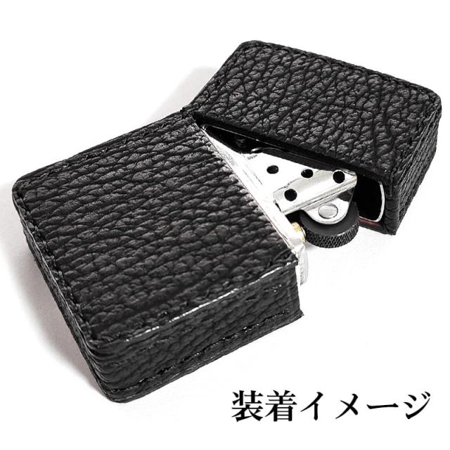 オイルライター革ケース 本革 シャーク 革サック サメ ZIPPO対応 鮫皮 ブラック ジッポ ライターケース 黒 おしゃれ かっこいい