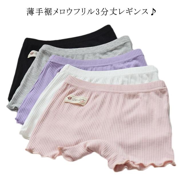 薄手裾メロウフリル3分丈レギンス 女の子 ボトムス レギパン レギンス パンツ スパッツ ペチコート ペチパンツ インナーパンツ 子供服パンツ 韓国子供服 送料無料 モダール ストレッチ性 ブラック ホワイト パープル ピンク グレー 100cm-150cm
