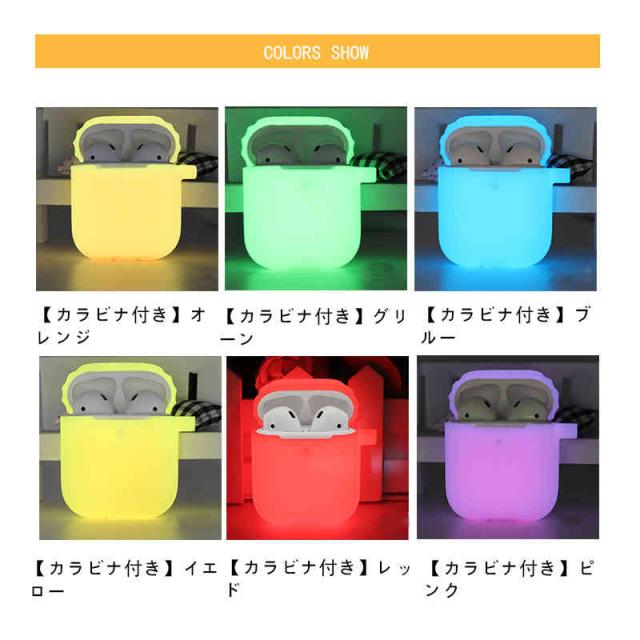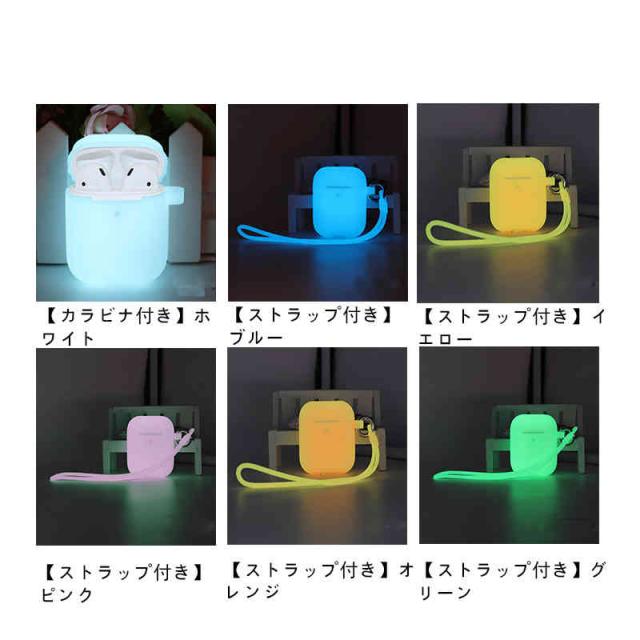 エアポッズケース エアーポッドケース イヤホンケース 夜光タイプ カラビナ付き カバー シリコン 保護ケース 保護カバー ソフトケース アクセサリー 第一世代 第二世代 プロ スリム 耐衝撃 おしゃれ シンプル 男性 女性
