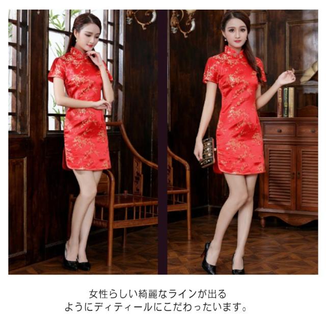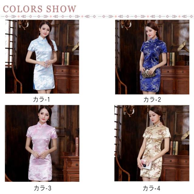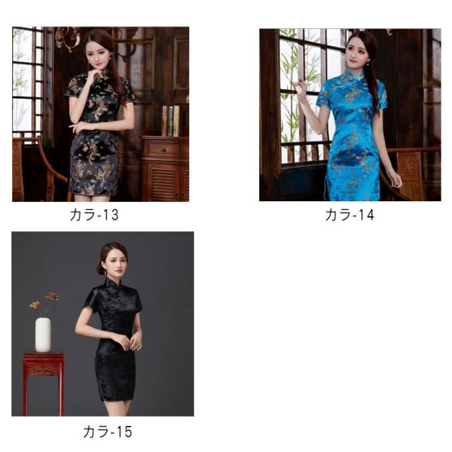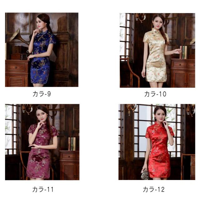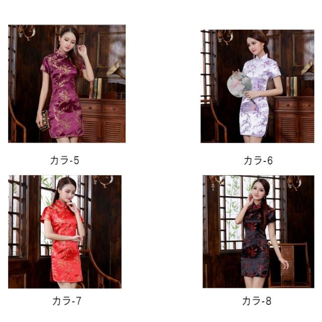 チャイナドレス コスプレ チャイナ服 コスチューム 半袖 大きいサイズ サテン 仮装 パーティー イベント キレイめ お洒落 スリット 花柄 龍鳳柄 中華風 ショート丈