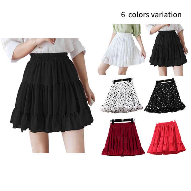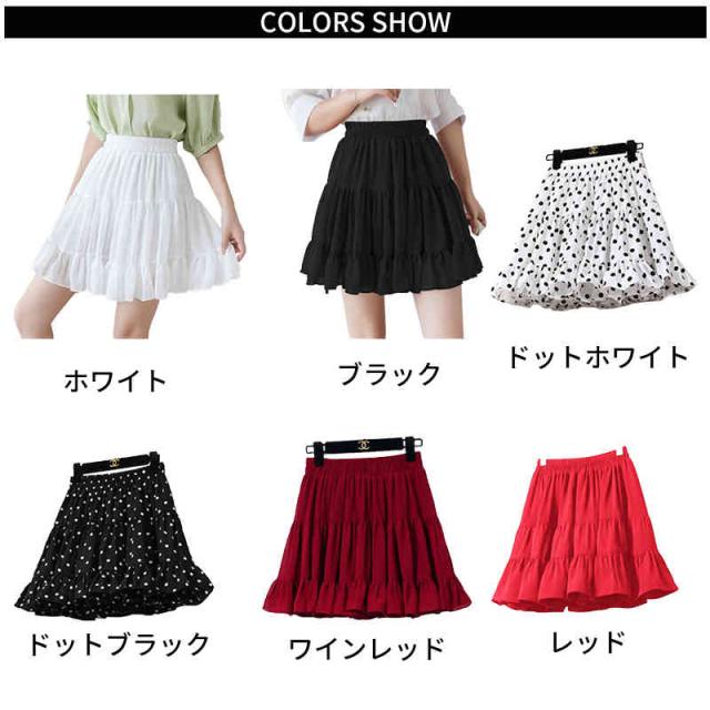レディース ミニスカート ハイウエスト スカート ミニ ボトムス 春 夏 シフォンスカート ハイウエスト プリーツスカート 大きいサイズ 水玉 ドット柄スカート フリル ガーリー カジュアル 可愛い デート服?送料無料