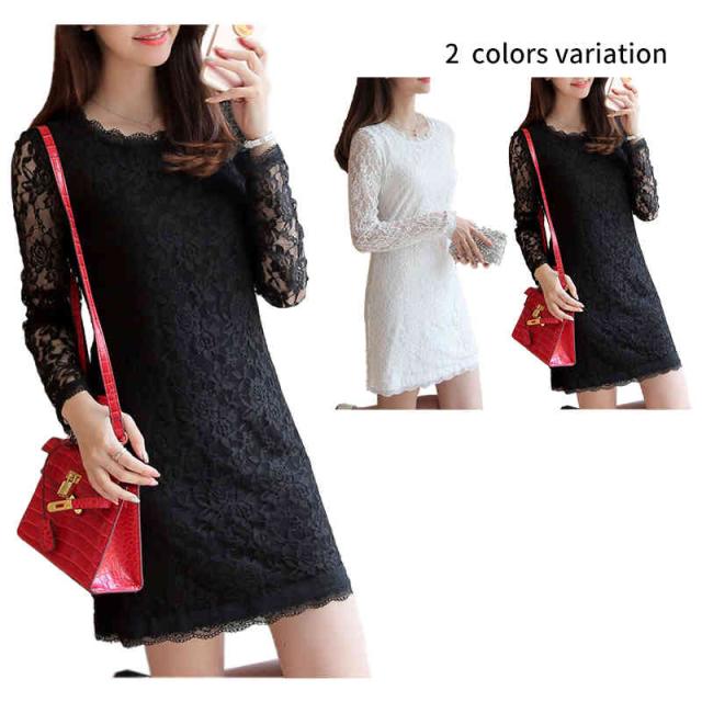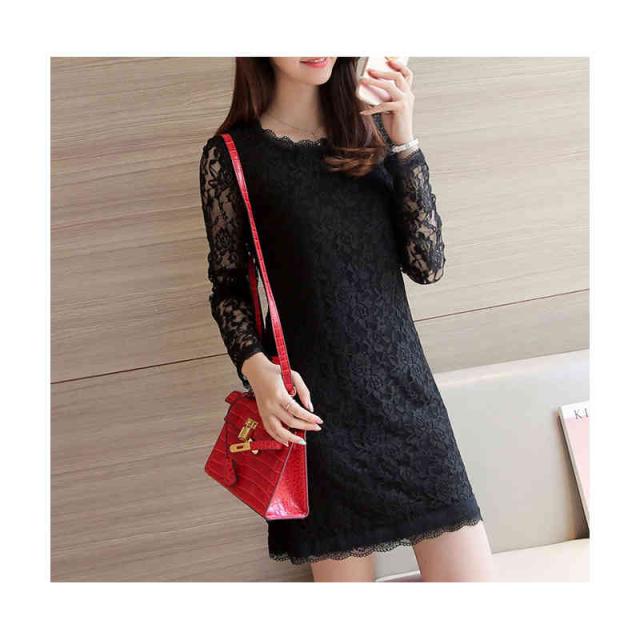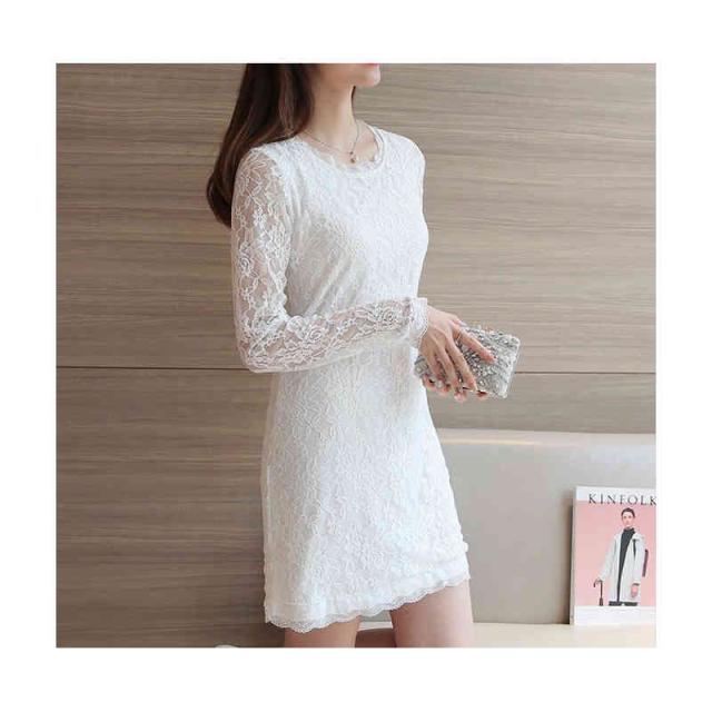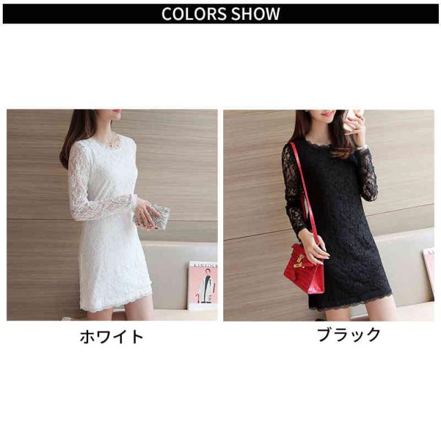 ロングワンピース レディース レースワンピース 長袖 春夏 トップス 薄手 ワンピース ミディアム丈 長袖 丸襟 レース付き おしゃれワンピース インナーワンピース 無地 シンプル カジュアル おしゃれ フェミニン 送料無料