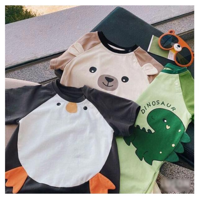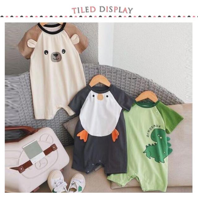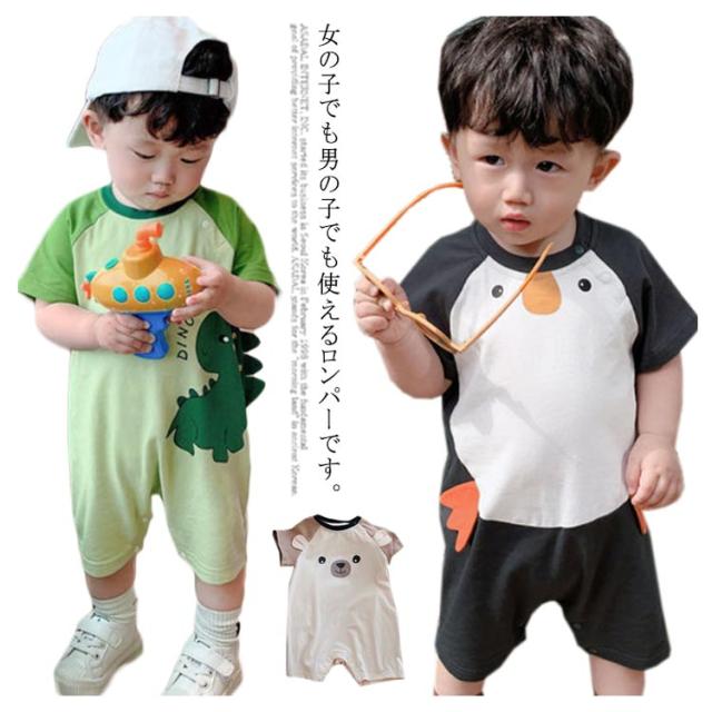 ベビー ロンパース 半袖 夏用 送料無料 カバーオール 子供服 綿 男の子 女の子 赤ちゃん 肌着 かわいい 動物柄 通気性抜群 柔らかく お昼寝 おくるみ 出産祝い プレゼント 熊