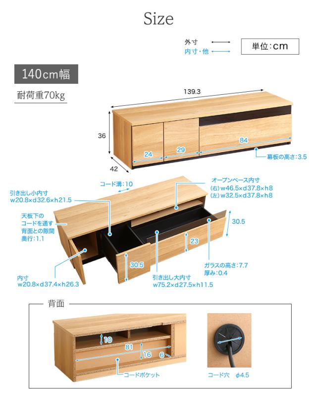 幅140:(約)幅139.3×高さ36×奥行42cm
