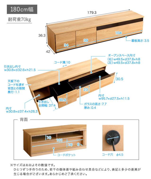 幅180:(約)幅180.3×高さ43×奥行37cm
