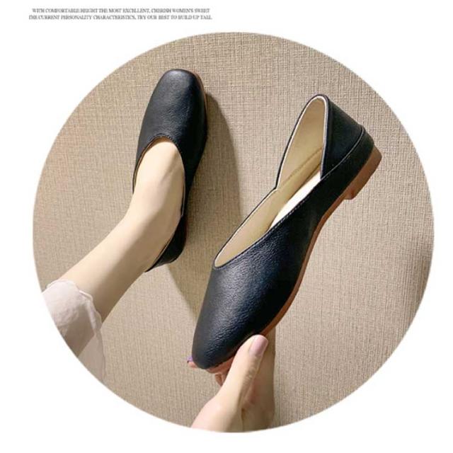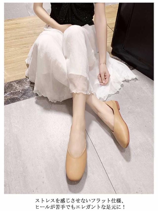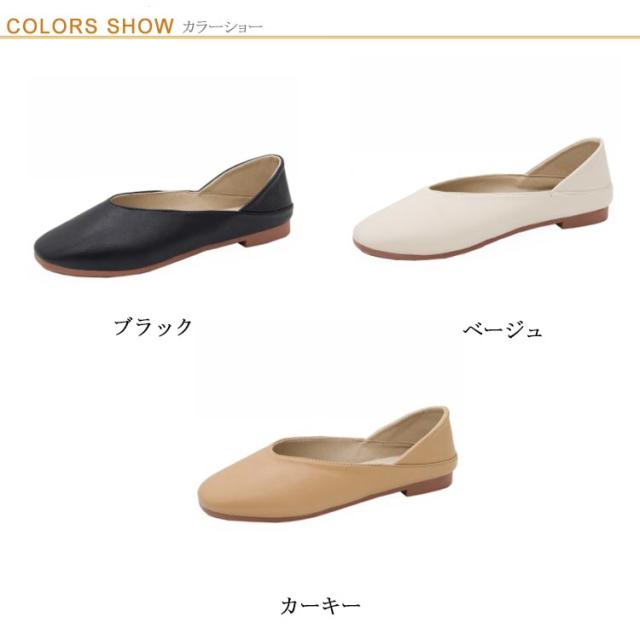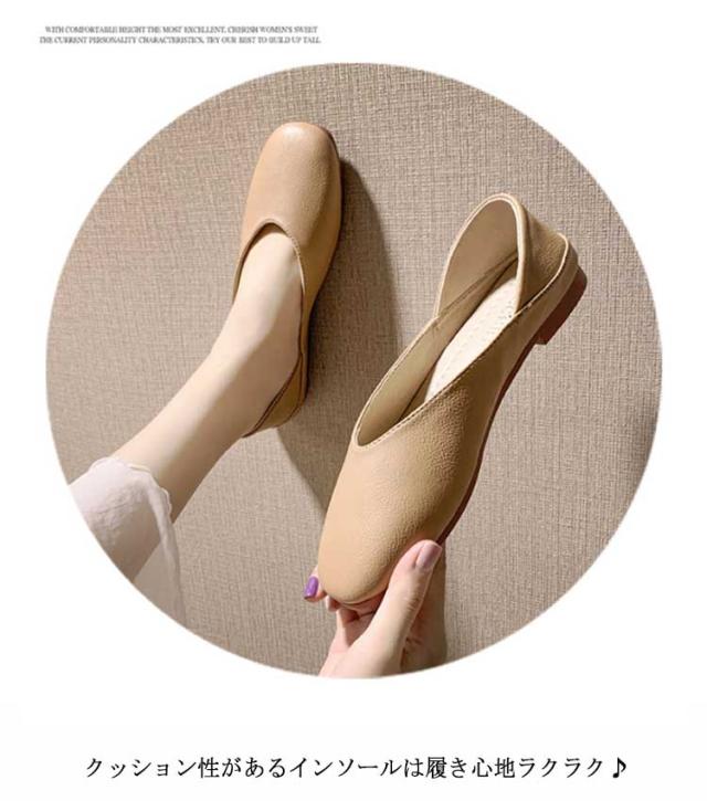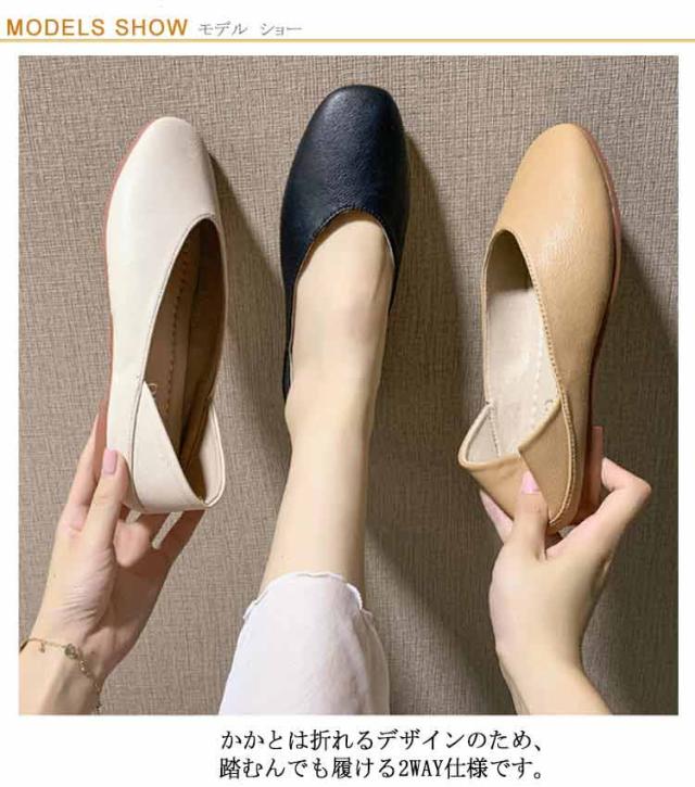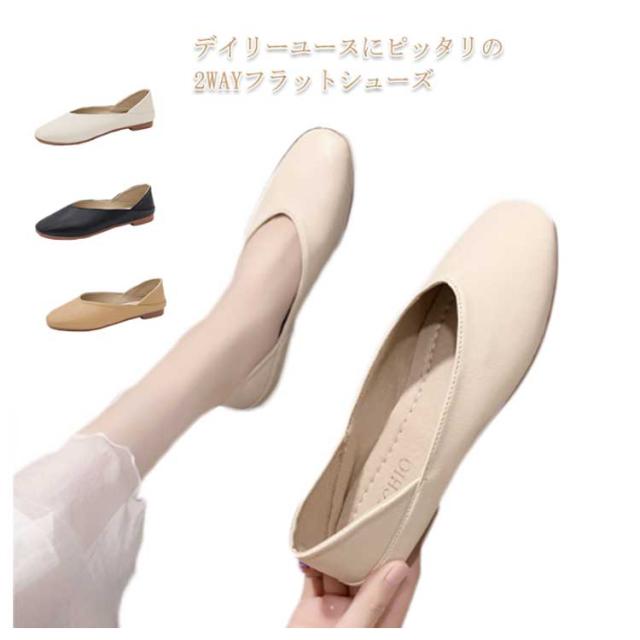 パンプス 痛くない フラット ローヒール レディース 2WAY 低反発 歩きやすい スリッポン ぺたんこ カジュアル 快適 疲れにくい PUレザー シンプル 軽い Vカット ペタンコ カジュアルシューズ ブラック ベージュ 軽量