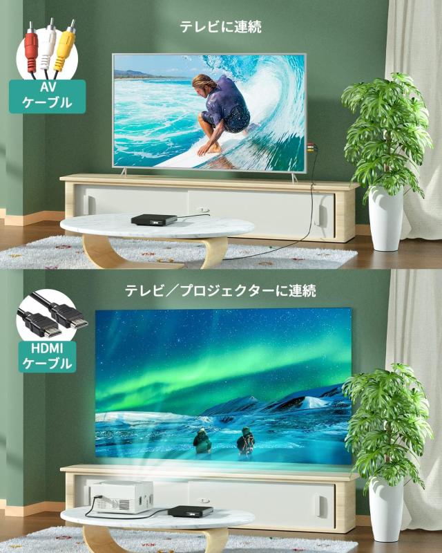また、付属のHDMIケーブルを使用することで、テレビやプロジェクターとの接続が簡単に行えます。