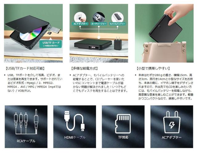 さらに、モバイルバッテリーを使用して給電しながら、CDを再生することも可能です。