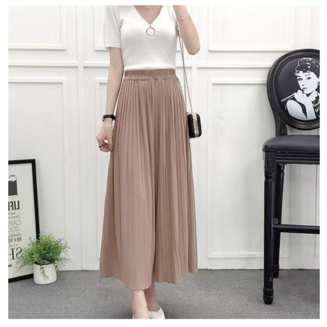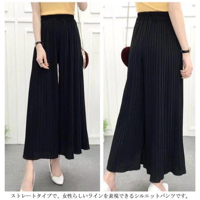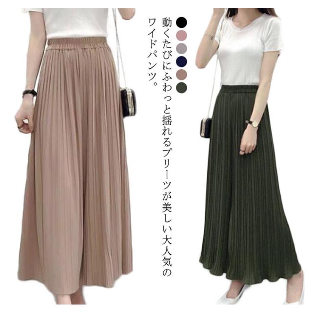 | 動くたびにふわっと揺れるプリーツが美しい大人気のワイドパンツ。 ストレートタイプで、女性らしいラインを表現できるシルエットパンツです。 柔らかくラクなはき心地とおしゃれな絶妙なワイドシルエットが魅力です。 カジュアルな見た目ながらも、無駄な装飾を施さないシンプルなデザインで様々なコーディネートにマッチします。 | |
