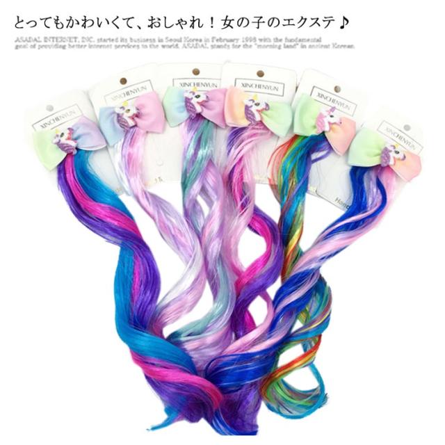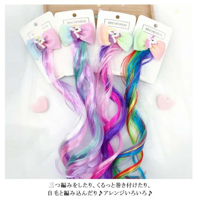女の子 エクステ ヘアクリップ ワンタッチ式 ダンス おしゃれ かわいい キッズ エクステンション イメチェン ヘアアレンジ アレンジ カラフル レインボー ユニコーン