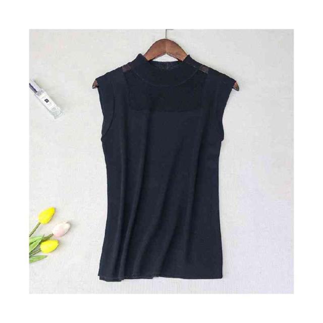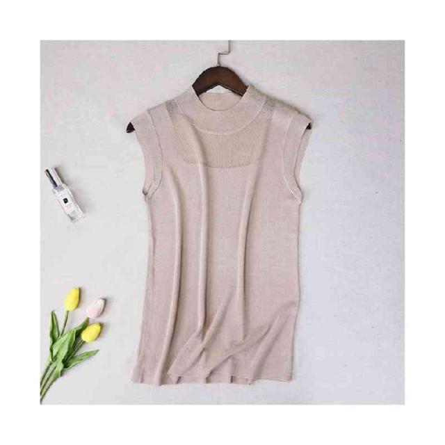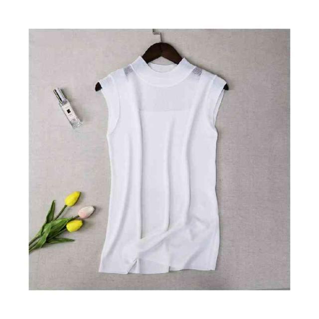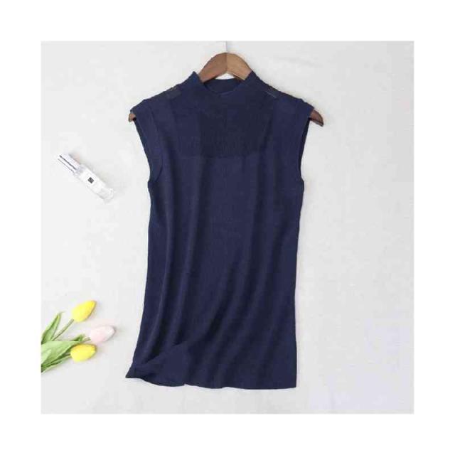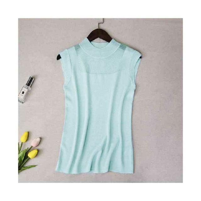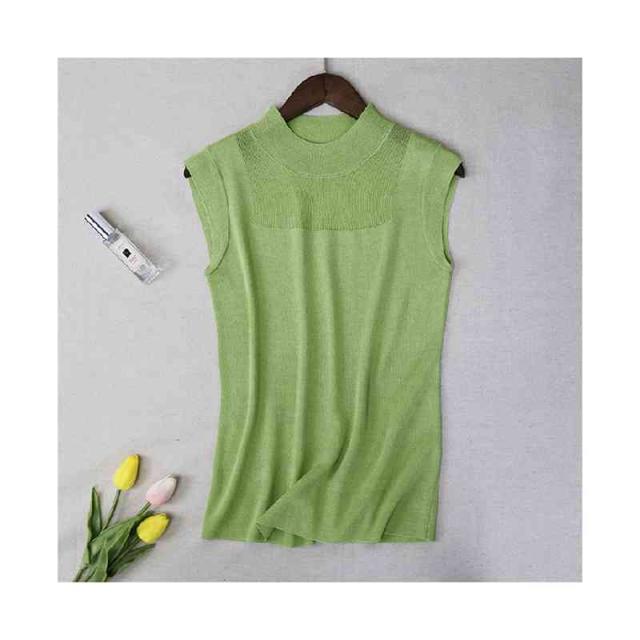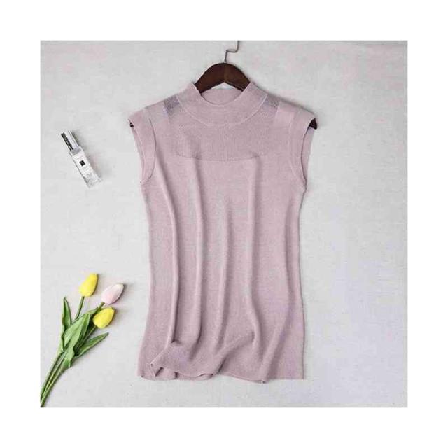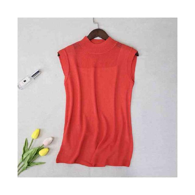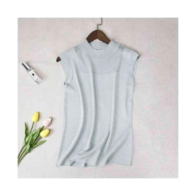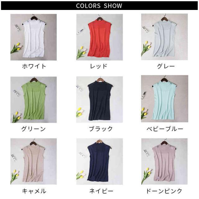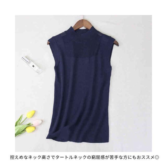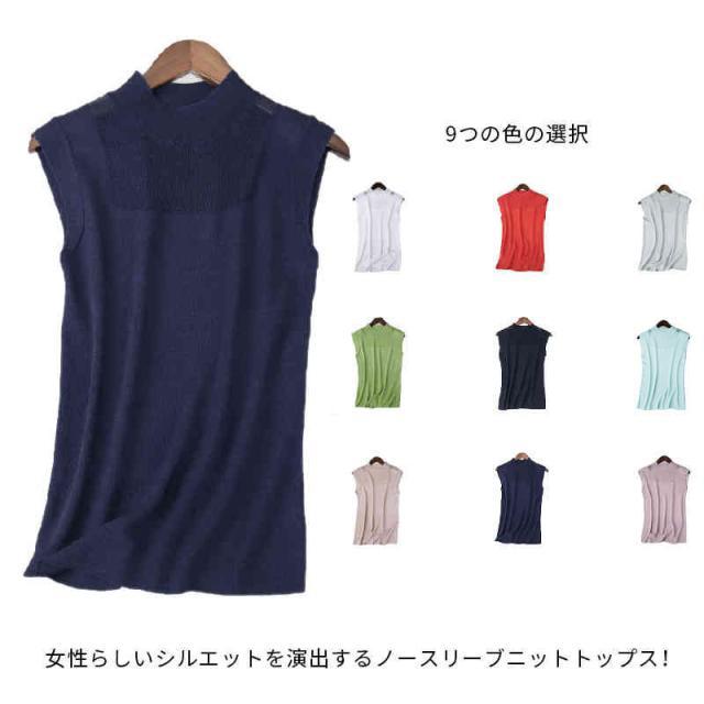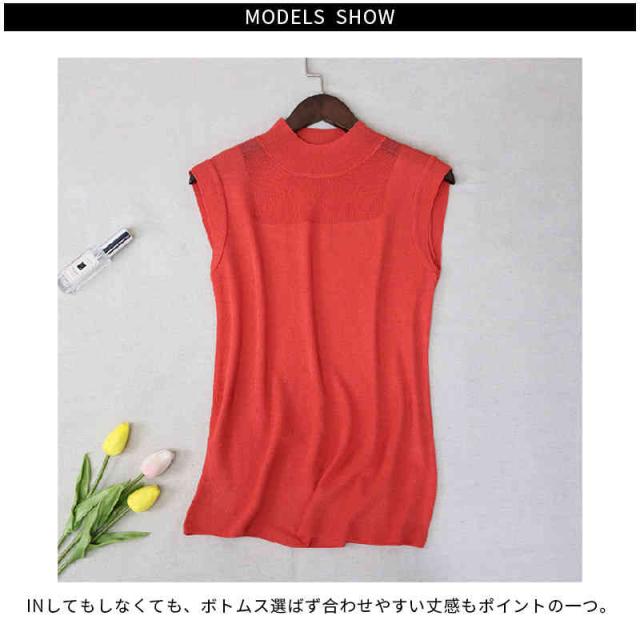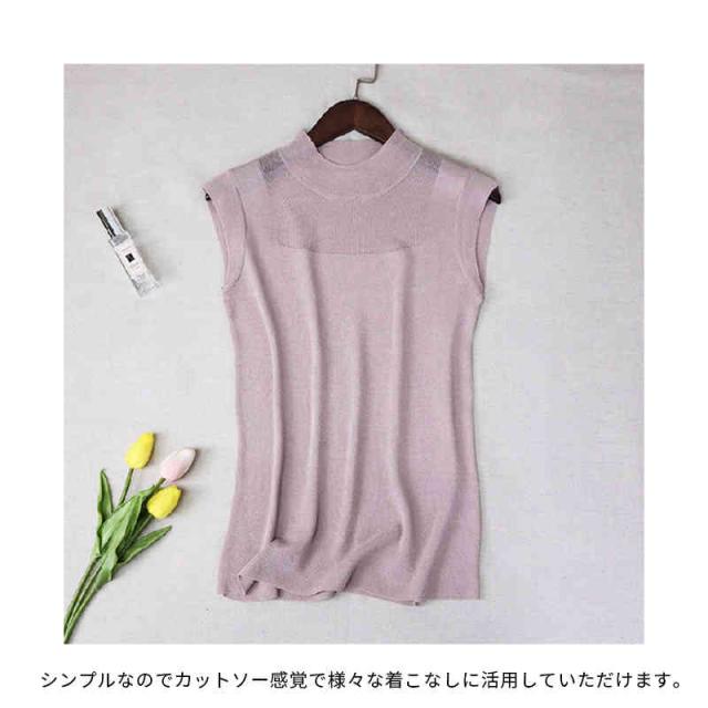 サマーニット レディース ハーフタートルネック ニット 袖なし ノースリーブ トップス シースルー 無地 シンプル 上品 おしゃれ 可愛い 夏