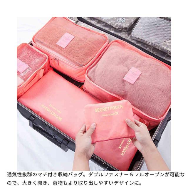 収納ポーチ 6点セット トラベルポーチ レディース メンズ 大容量 衣類収納 メッシュバッグ 小物収納 防水 ファスナー開閉 通気性 卒業旅行 出張