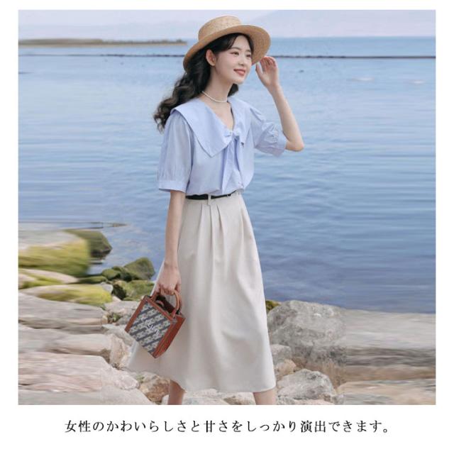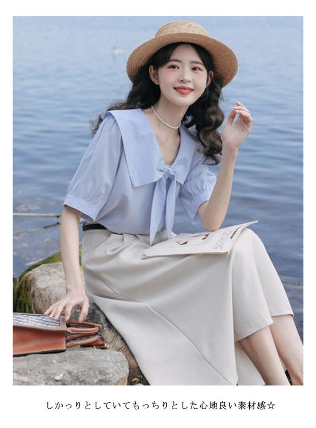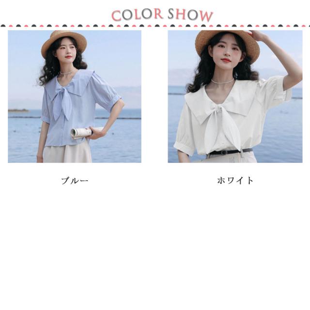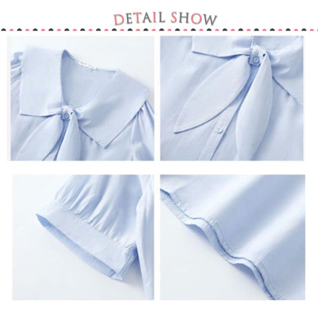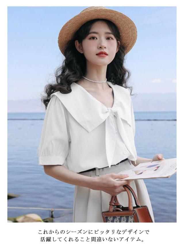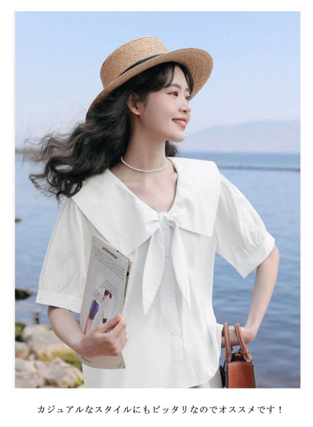 シャツ ブラウス レディース 半袖 カジュアル 襟付き 夏物 トップス リボン 無地 前開き かわいい インナー ゆったり 洗える 通学 制服 デート