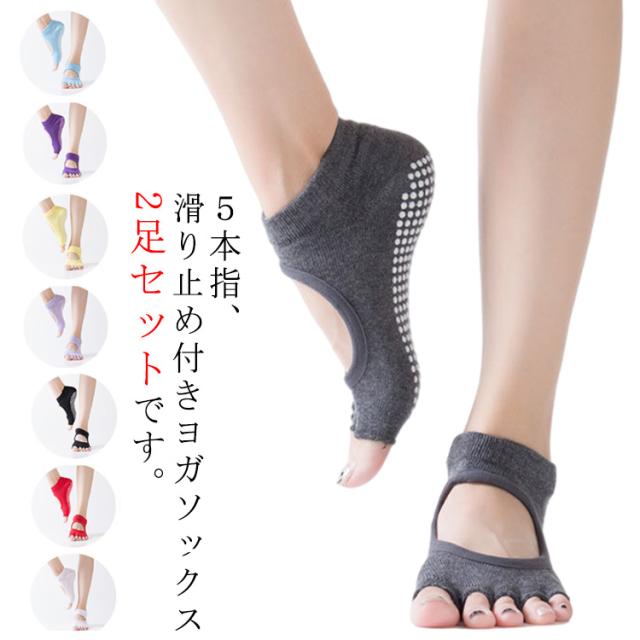 ヨガソックス 5本指 ソックス 2足セット 滑り止め 送料無料 ヨガ靴下 指ナシ 指無し 可愛い 防臭 速乾 快適 吸汗 ストレッチ ピラティス ホット ヨガ ウエア くつした トレーニング ジム