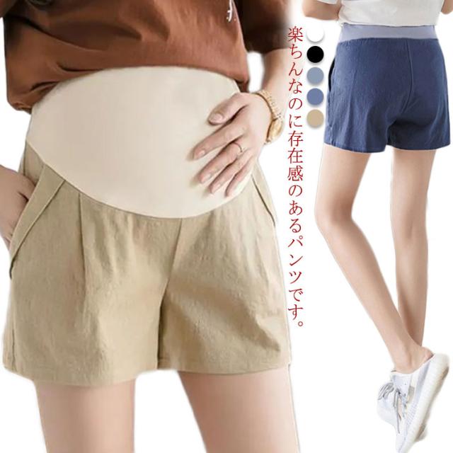 パンツ マタニティ ショートパンツ 3分丈パンツ 妊婦服 ウエスト調節 サルエルパンツ 産前 部屋着 綿 麻 ポケット付き ヨガ スポーツ フィットネス 無地 美脚 シンプル ベージュ ブラック ホワイト