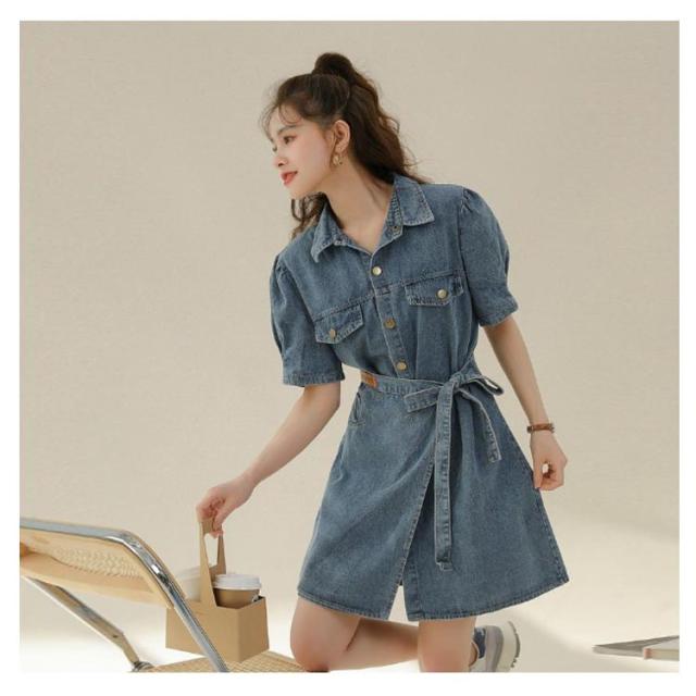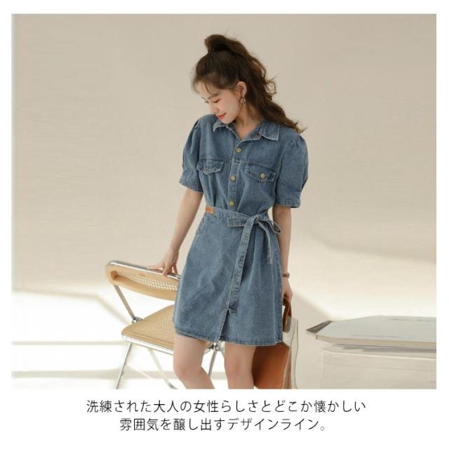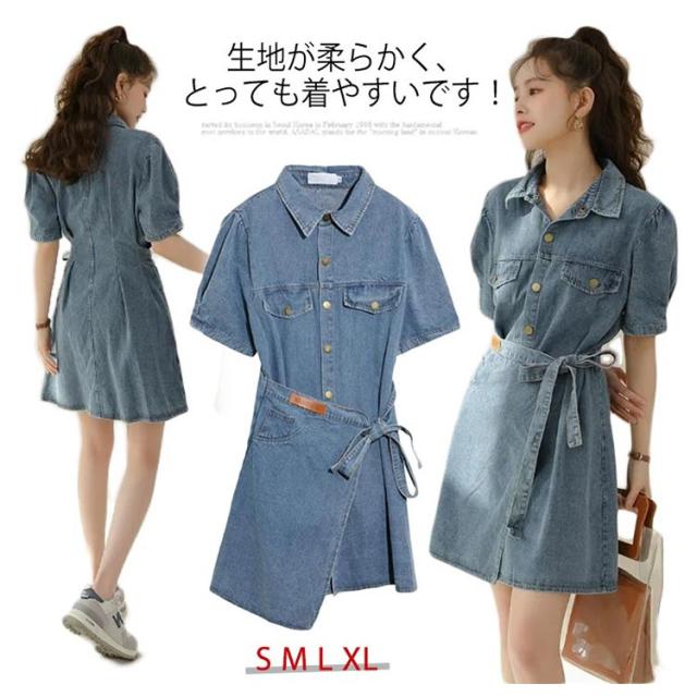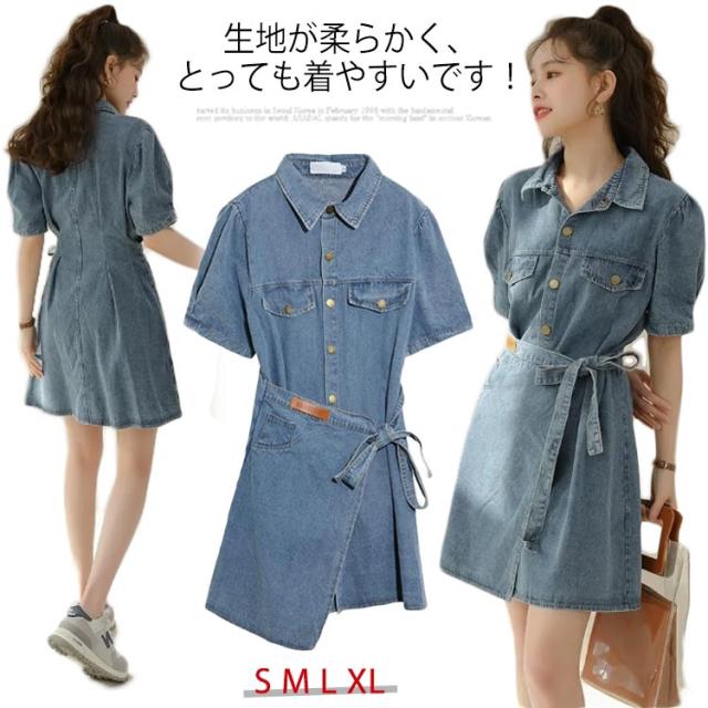 デニム シャツ ワンピース 半袖 デニムワンピース デニムワンピ 春 夏 秋 レディース 半袖ワンピース デニム シャツワンピース デニムシャツ 夏ワンピース 大きいサイズ S M L XL シンプル 半袖ワンピ 体型カバー 着痩せ 通勤 上品 上質 送料無料