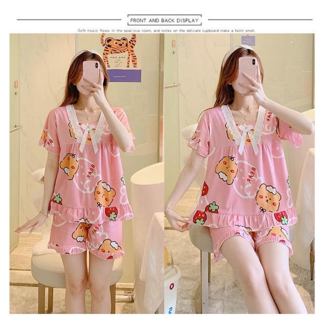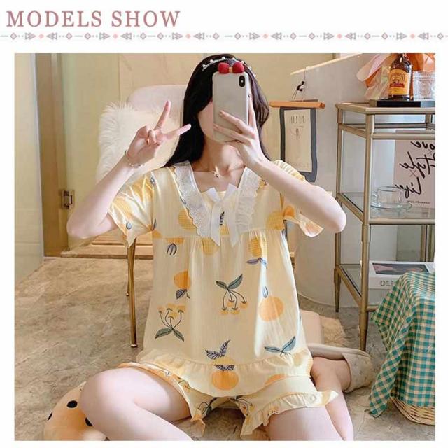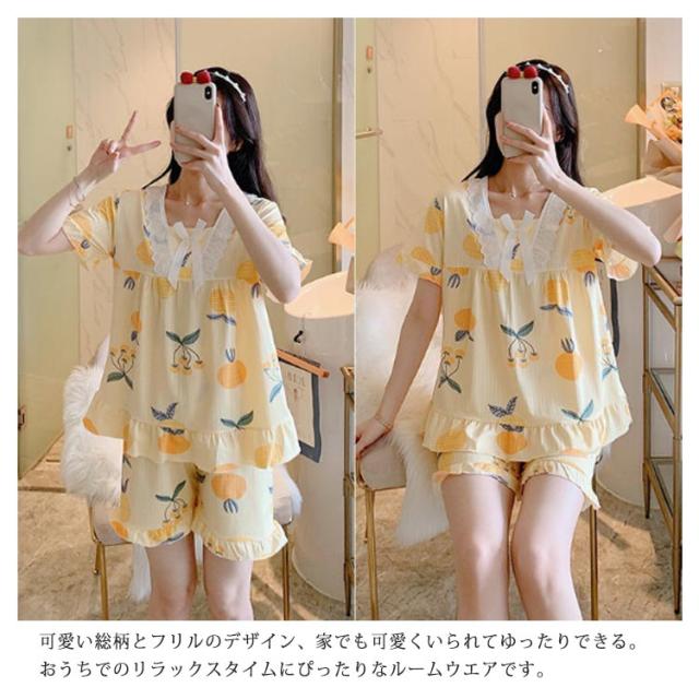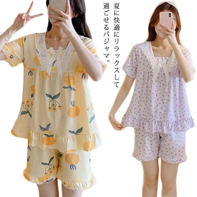 パジャマ レディース 半袖 可愛い 夏 短パン ルームウェア 上下セット 部屋着 ナイトウェア シンプル おしゃれ フリル ショートパンツ 寝間着 ウエストゴム 寝巻き?リラックスウェア セットアップ ズボン 送料無料