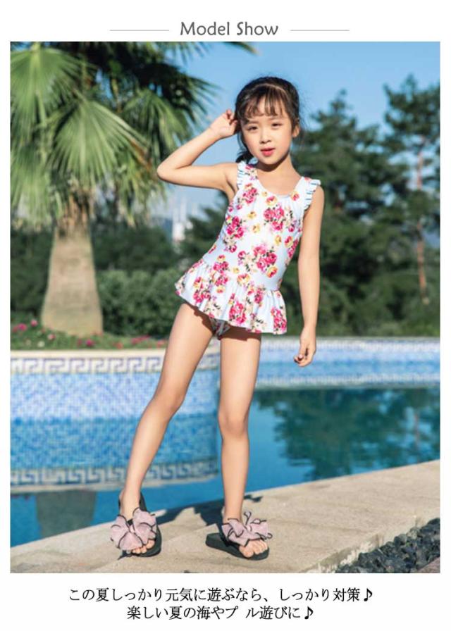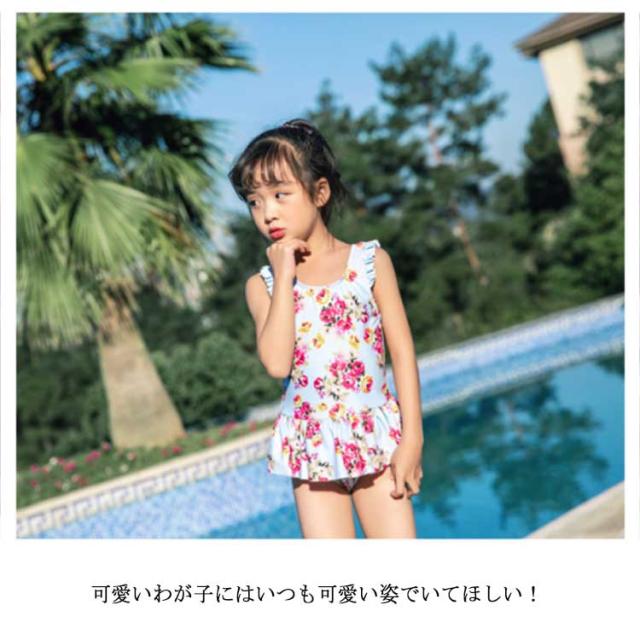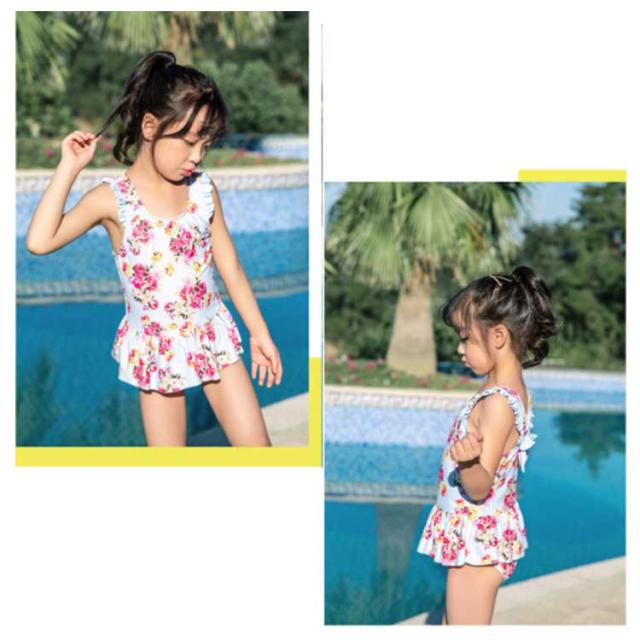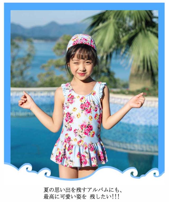 送料無料 ガールズ水着 ベビー水着 ワンピース 子供の水着 女の子 スカートつき 小学生 体カーバー 子供服 キッズ 女の子 水着 プールグッズ 女子 女児 子供 花柄 スイムキャップ