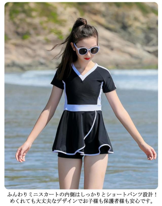送料無料 スクール水着 女の子 キッズ 水着 ワンピース 子供 ジュニア 140cm 150cm 160cm 170cm 一体型 無地 UPF50+ 裏地付き 透けない ネームタグ付き こども スイムウェア 女児 幼稚園 小学生 中学生 かわいい チュニック 紫外線カット率99.9%以上