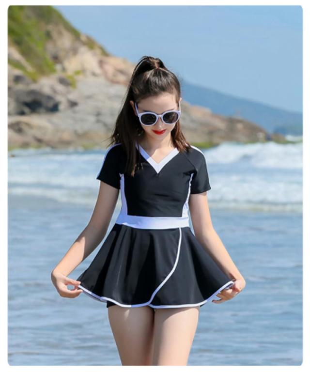 | 【ワンピースタイプスクール水着】前も後ろも広めのネックラインで動きやすさも快適!定番ネイビー色にアクセントのカラーラインが可愛いデザインです◎ 【UVカット&シンプルデザイン】王道のスクール水着シルエットのデザインに程よい広がりのスカートをプラスした可愛いデザイン♪UVカットで日焼け対策もばっちりで安心◎ 【着心地快適!伸縮性素材】広めの襟ぐりや脇高設計の安心デザインにプラスして、伸縮性のある生地を使用して作られており快適な着心地を実現しました!アクティブな動きでも◎◎ 【スカート下にはショートパンツ】ふんわりミニスカートの内側はしっかりとショートパンツ設計!めくれても大丈夫なデザインでお子様も保護者様も安心です。 【選べる豊富なサイズ展開】140、150、160、170の豊富な4種類のサイズをご用意いたしました。お子様の体型に合わせてお選びください♪ | |