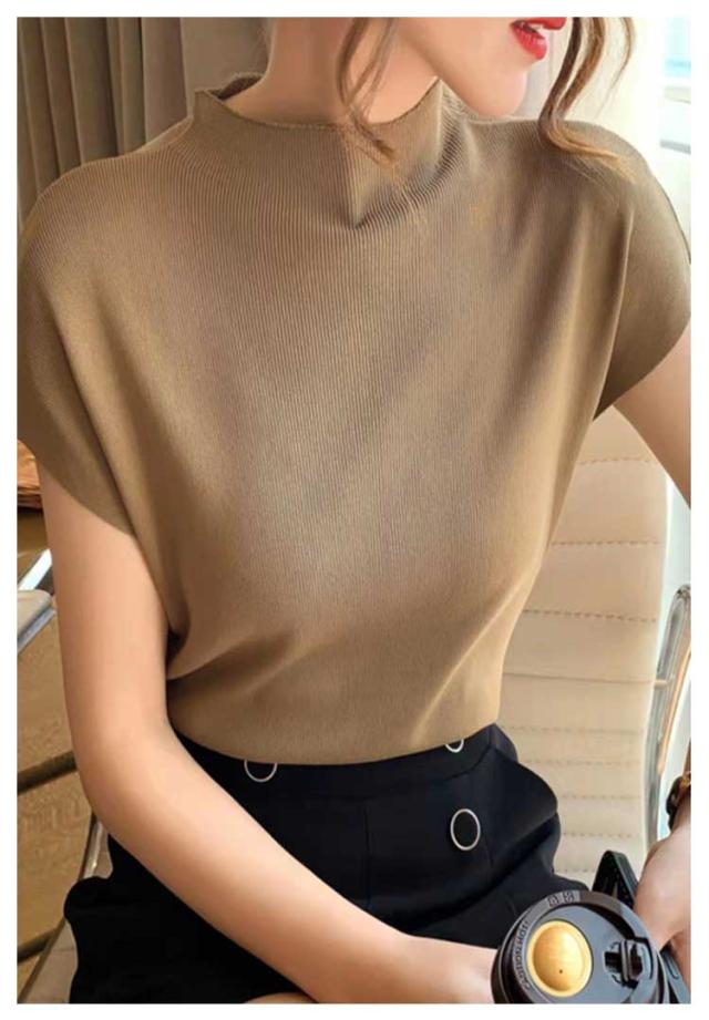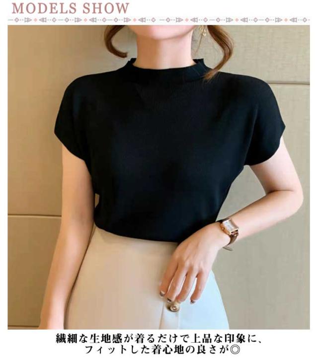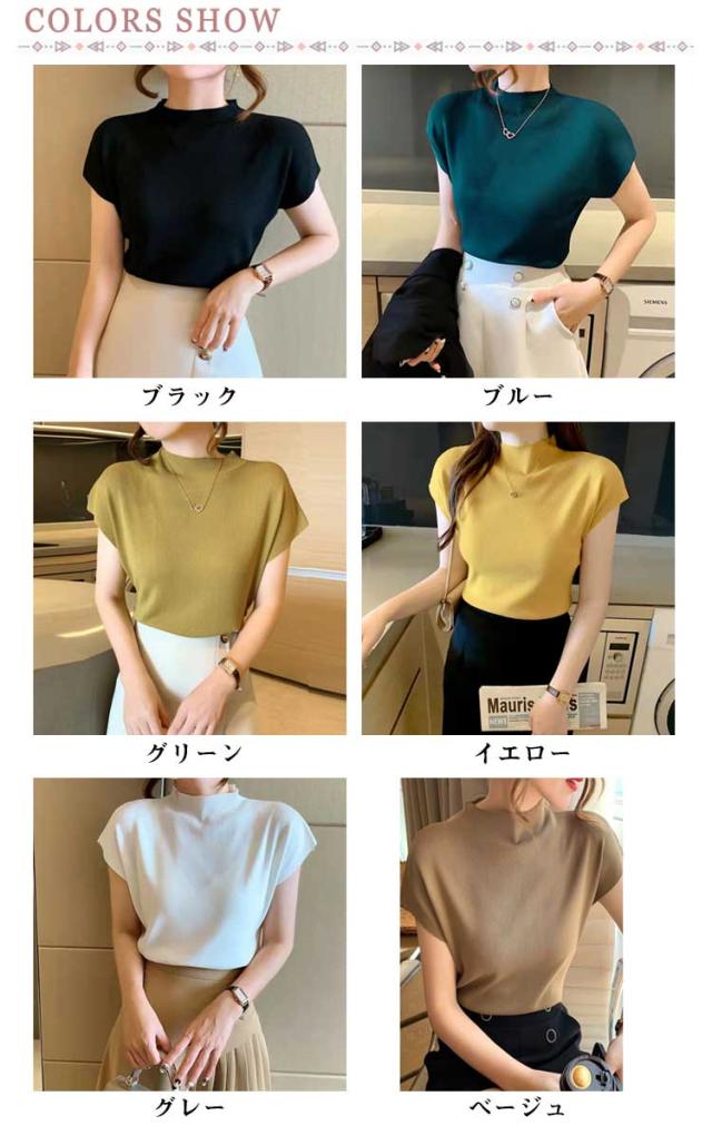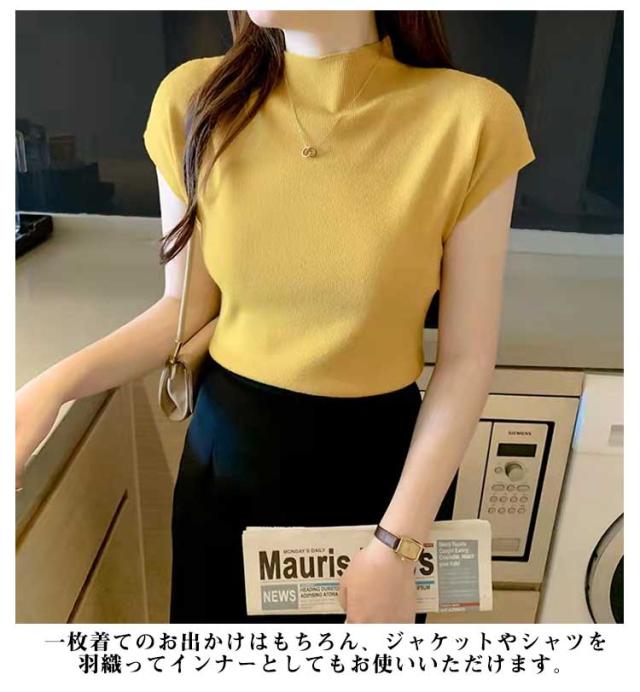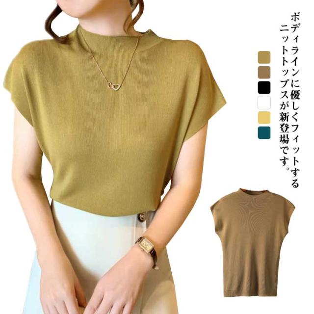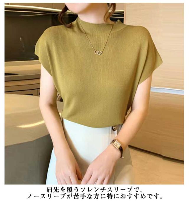 トップス タートルネック サマーニット レディース フレンチスリーブ 薄手 無地 ニット タートルネック 通勤 オフィス お洒落 フェミニン 夏物