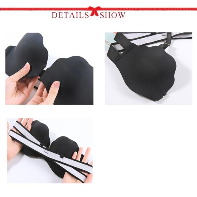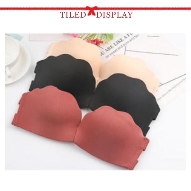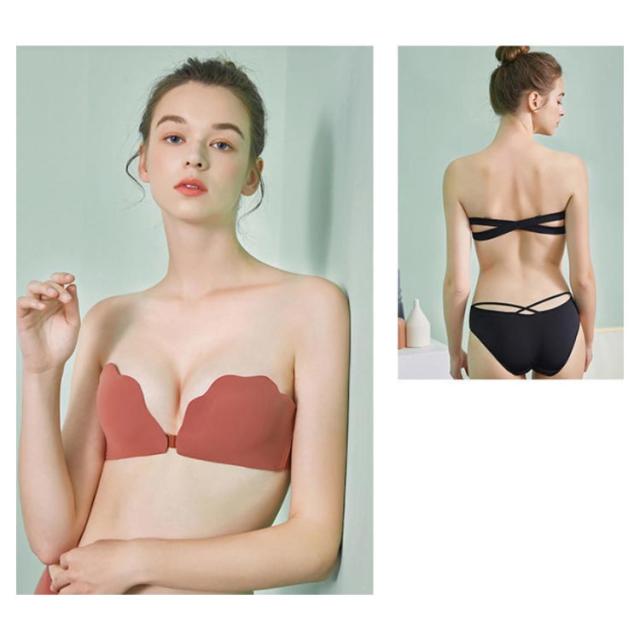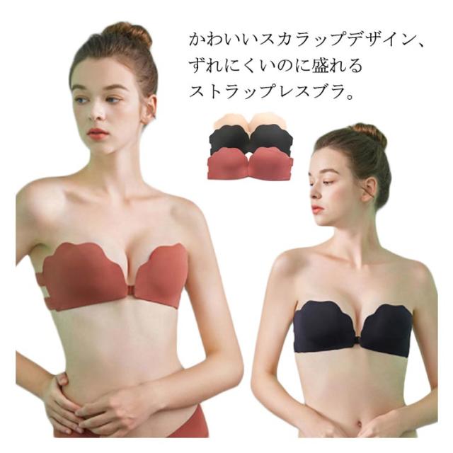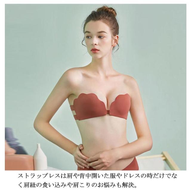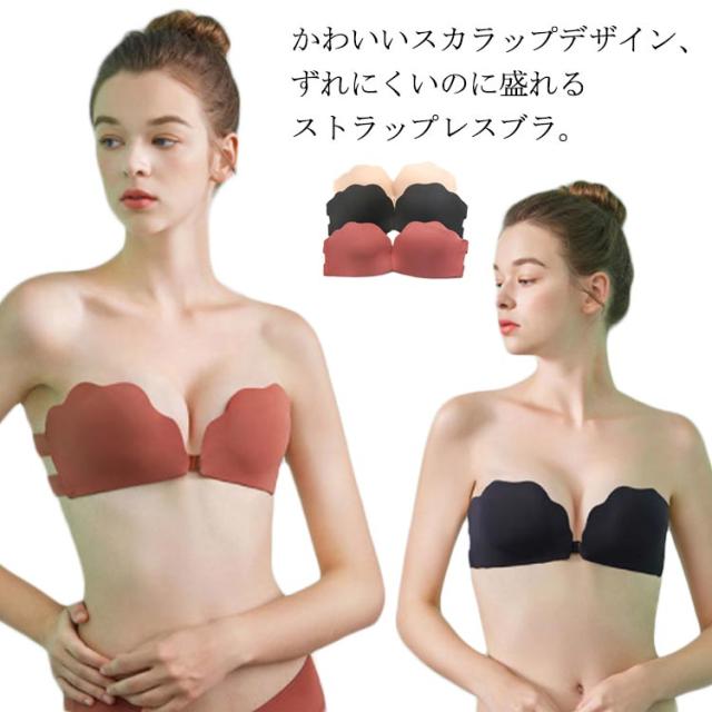 スカラップ ブラジャー 肩紐なし ハーフカップ 前開き ずれない 育乳 ストラップレスブラ 盛れる ノンワイヤーブラ フロンドフック かわいい 結婚式 ドレス 送料無料