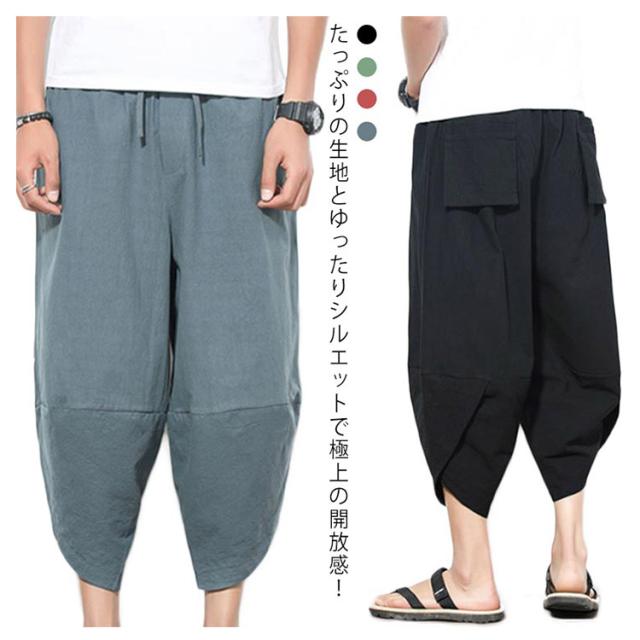 サルエルパンツ ワイドパンツ バルーンパンツ 送料無料 アラジンパンツ 春 夏 秋 袴パンツ パンツ カジュアルパンツ クロップドパンツ 七分丈 イージーパンツ ワイド 大きサイズ 体型カバー ダンス 動きやすい カジュアル お兄系 無地 M−5XL