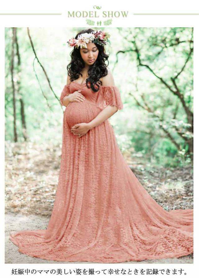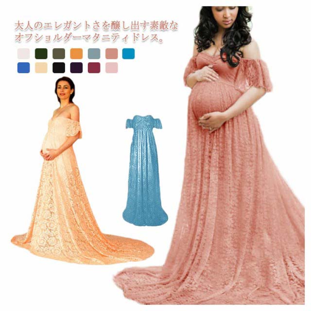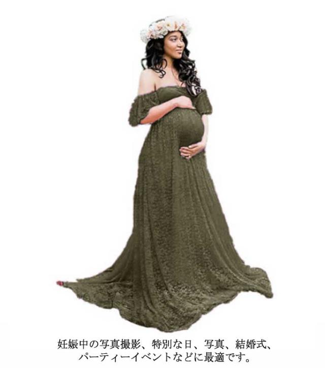 マタニティ ドレス ワンピース マタニティフォト 妊婦写真 マタニティ フォト 写真 撮影 ドレス レース ロング ウェディング オフショルダー ノースリーブ 結婚式 カラードレス フォーマル 記念写真 【送料無料】
