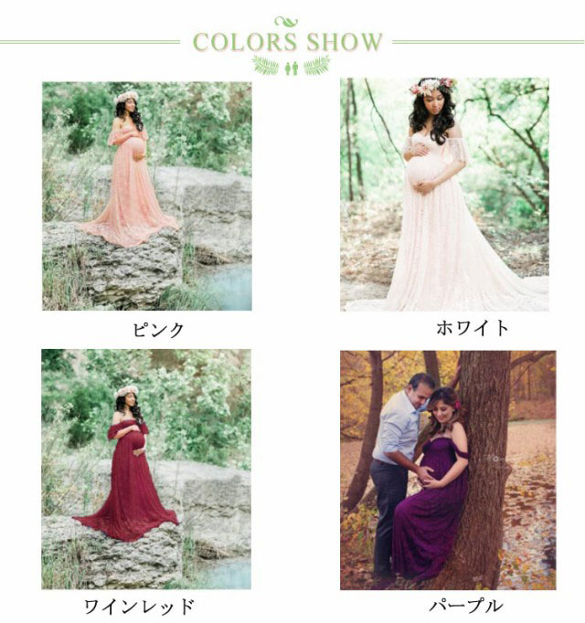 | 大人のエレガントさを醸し出す素敵なオフショルダーマタニティドレス。 妊娠中のママの美しい姿を撮って幸せなときを記録できます。 妊娠中の写真撮影、特別な日、写真、結婚式、パーティーイベントなどに最適です。 カラー展開豊富で、いろいろなバリエーションの撮影やイメージ違いの写真が残せます。 | |
