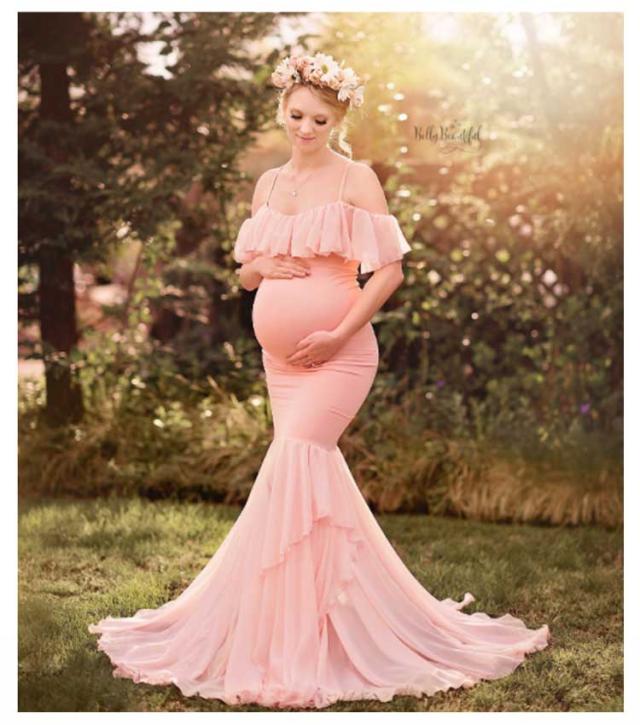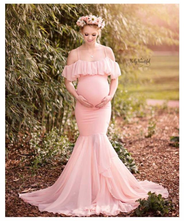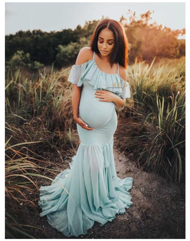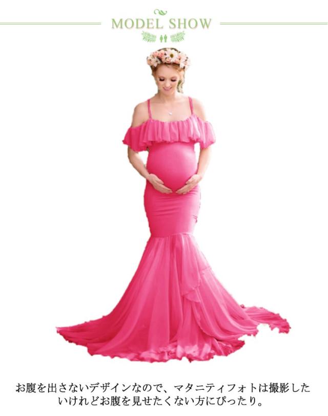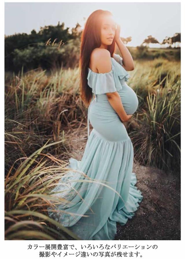 マタニティ ワンピース マーメード ドレス マタニティフォト 妊婦 マタニティ 写真 撮影 ドレス チュール ボリューム ウェディング 結婚式 ストレッチ 伸縮性 フォーマル 記念写真 ロングトレーン 【送料無料】