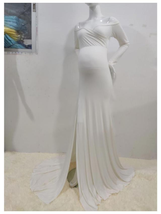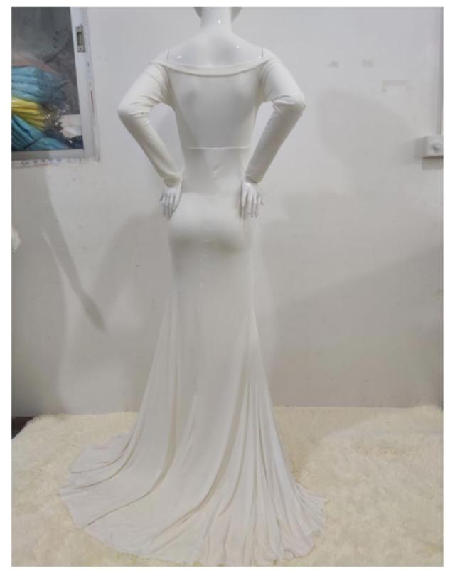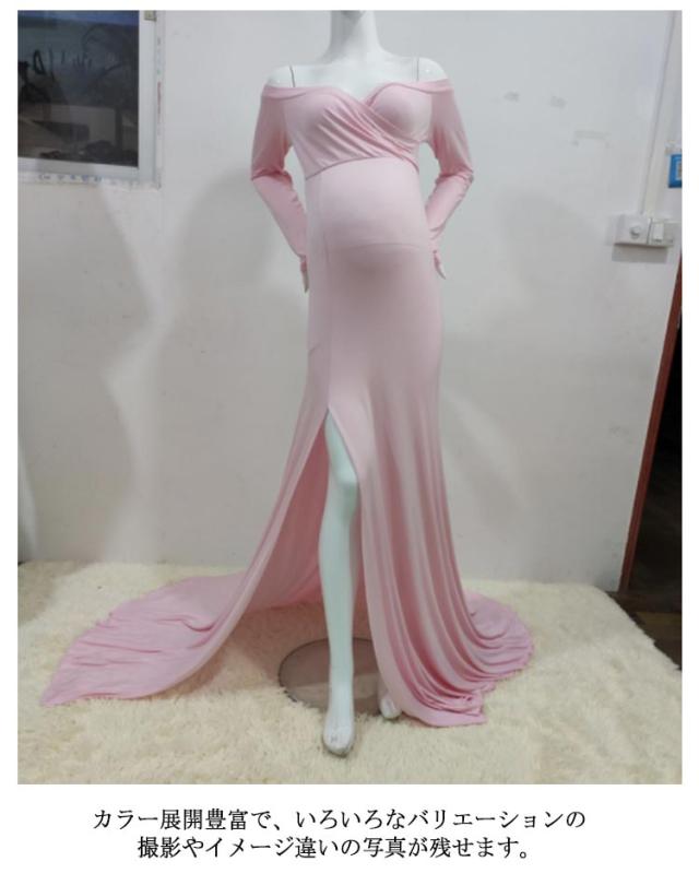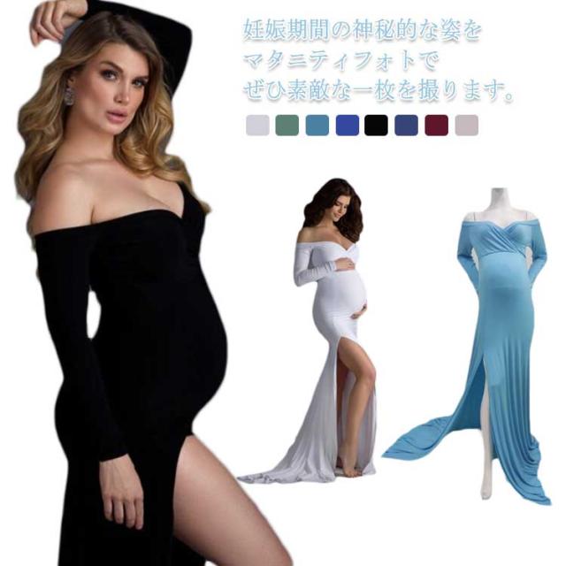 マタニティ ワンピース ドレス スリット タイト 伸縮性 マタニティフォト 妊婦 マタニティ 写真 撮影 ドレス 長袖 オフショルダー ウェディング 結婚式 ストレッチ フォーマル 記念写真 ロングトレーン【送料無料】