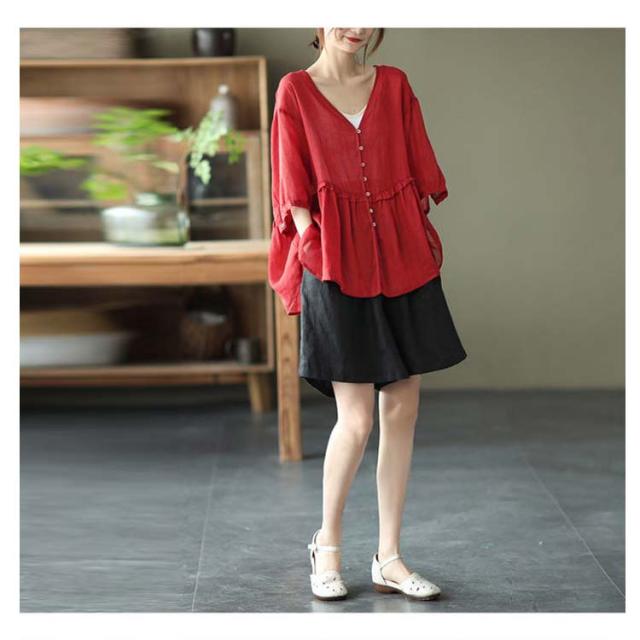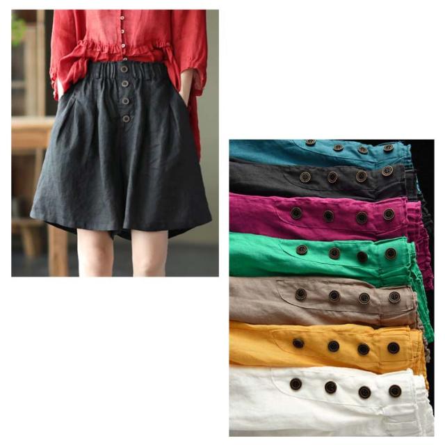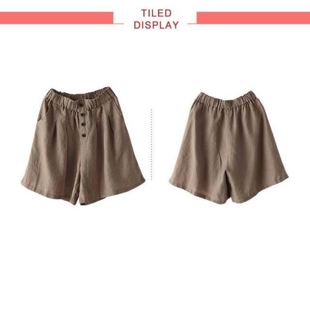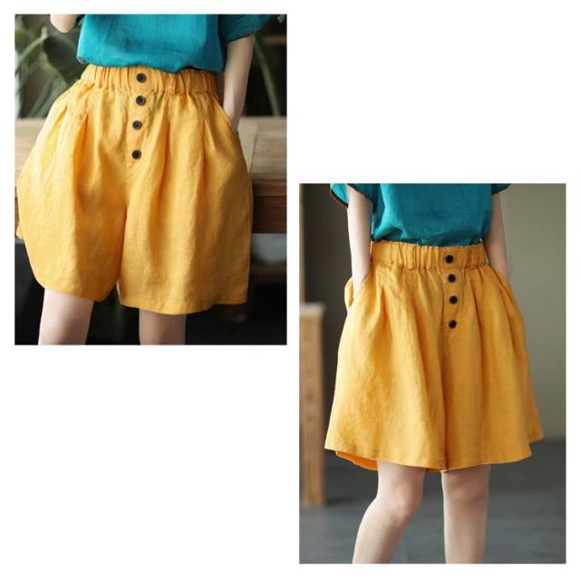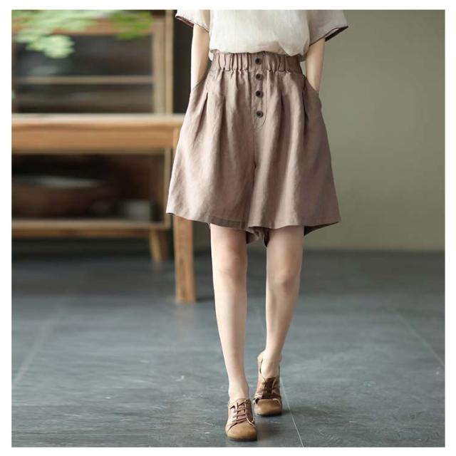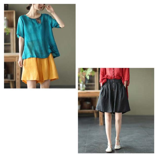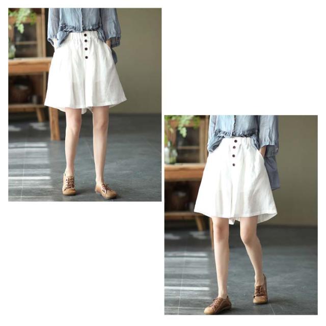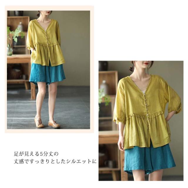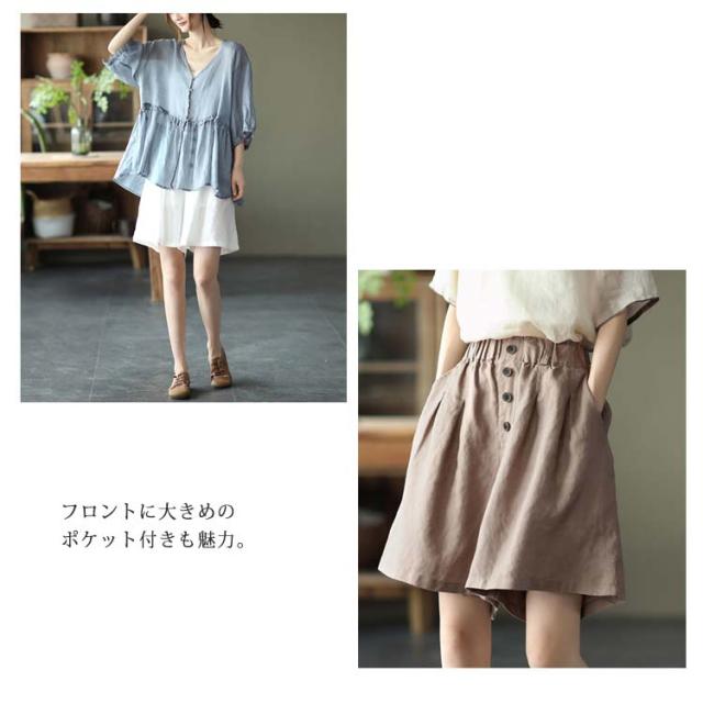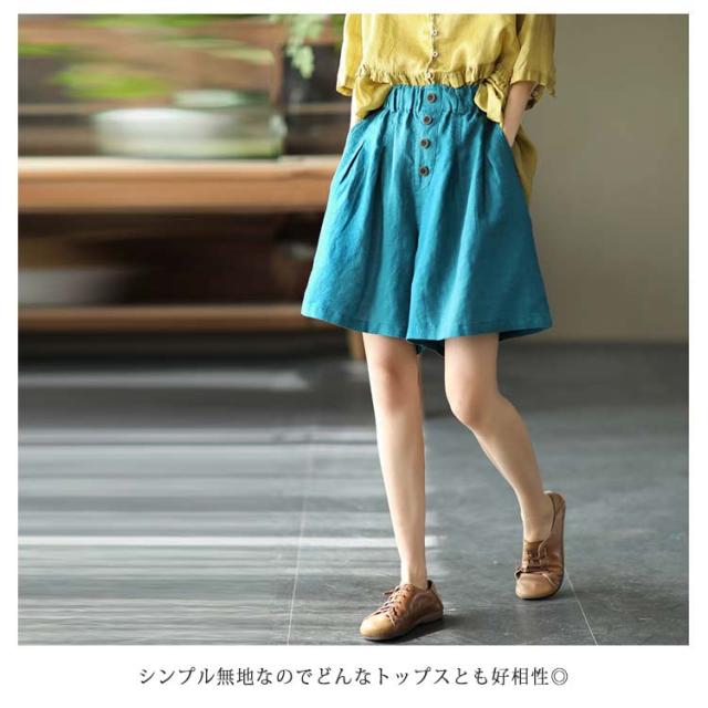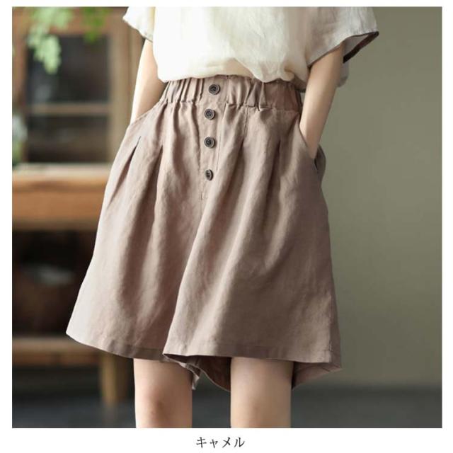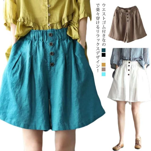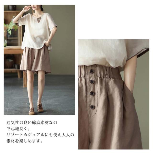 全5color×5サイズ!パンツ リネン 麻混 綿麻 ワイドパンツ ハーフパンツ レディース リネンパンツ ウエストゴム ナチュラル カジュアル シンプル 無地 春夏