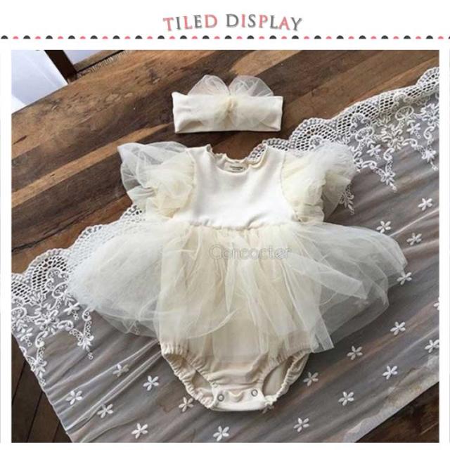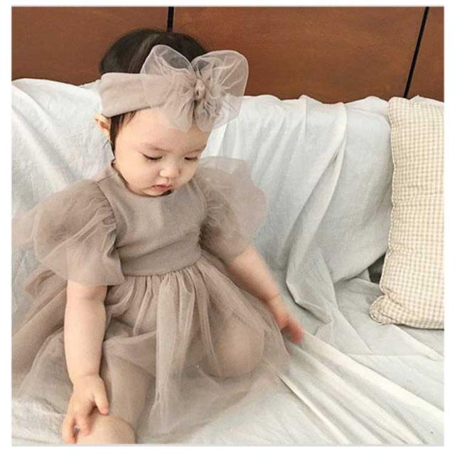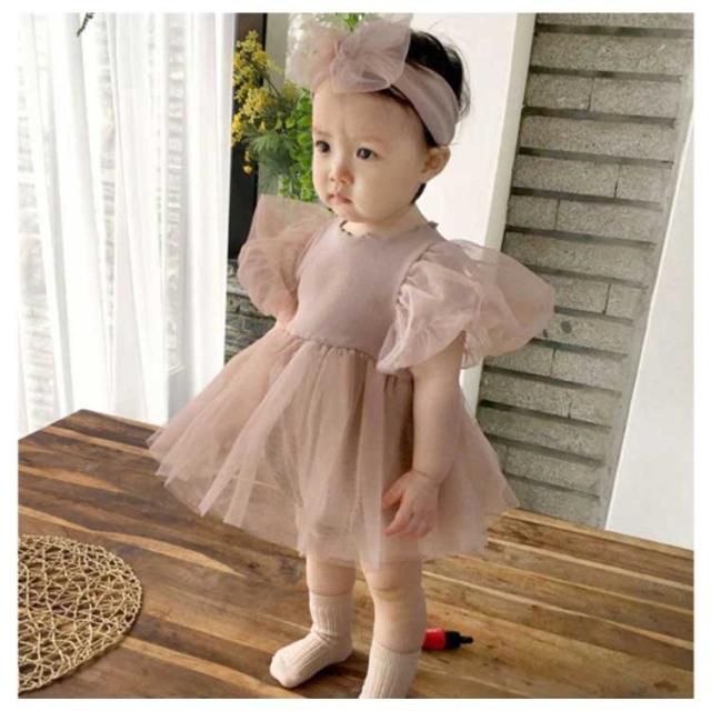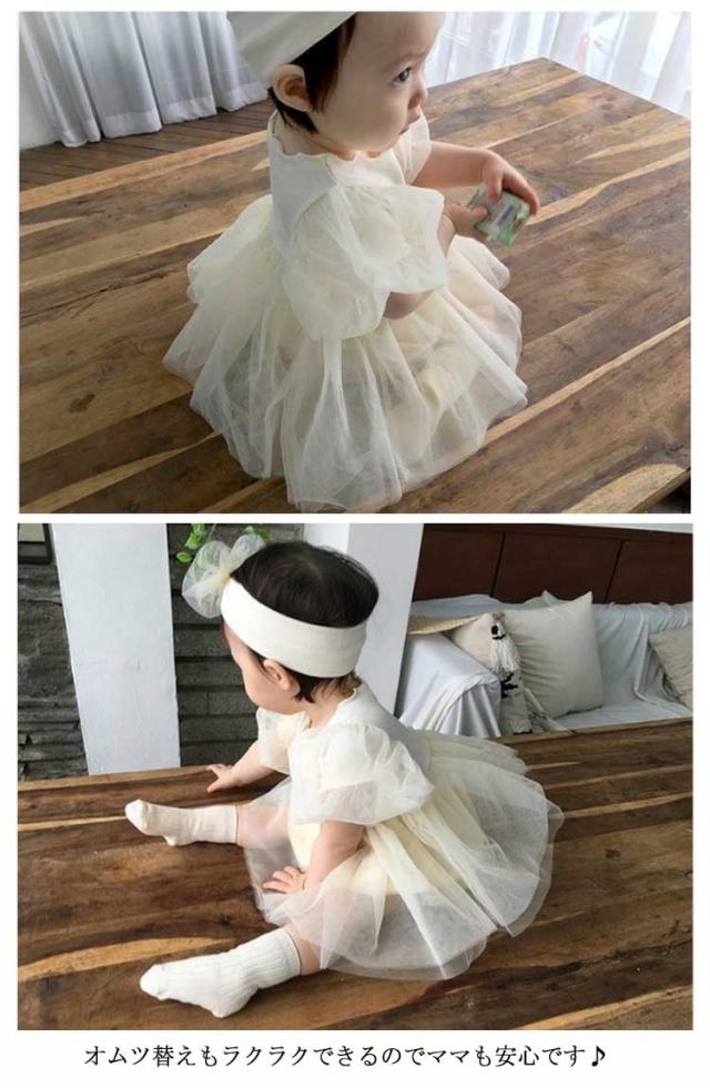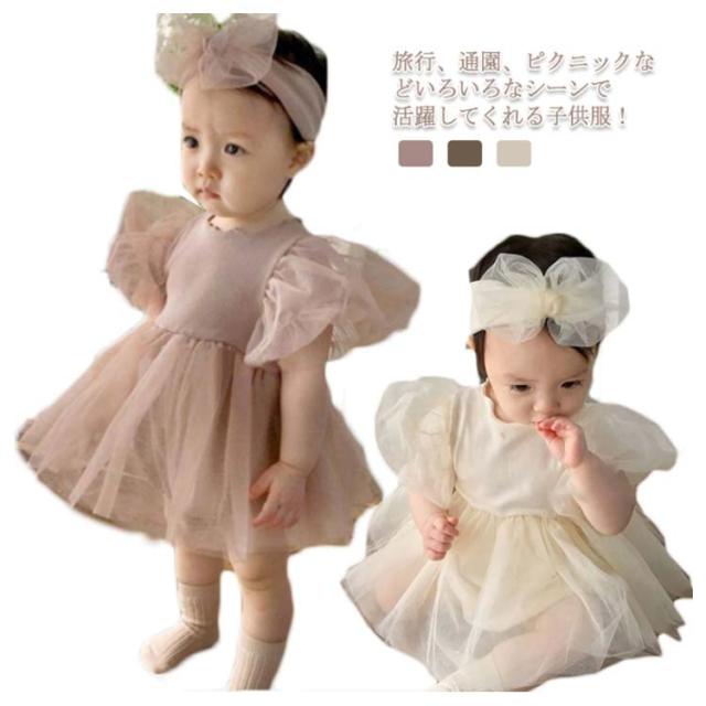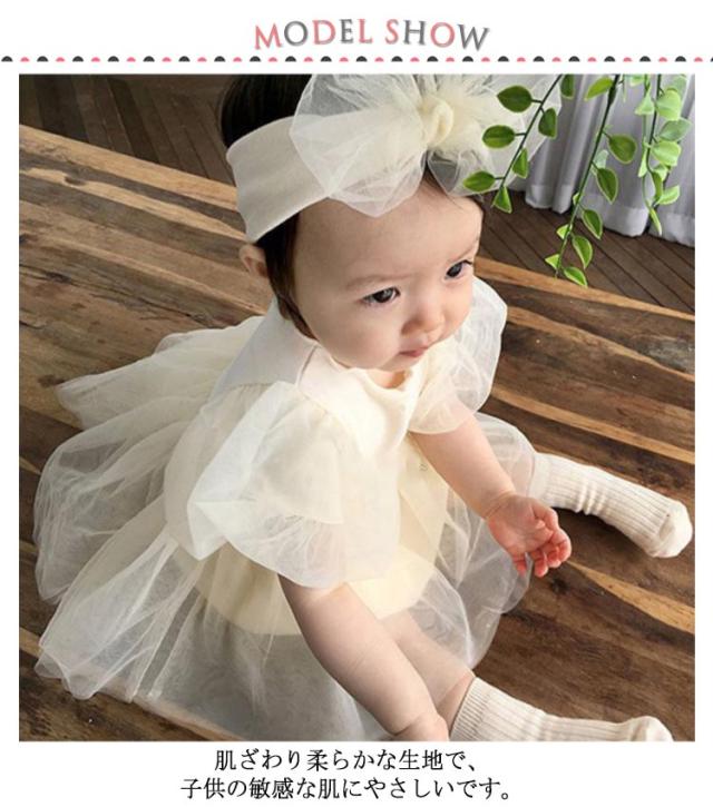女の子 ベビーワンピース 半袖 ベビードレス ロンパース ベビー服 ヘアバンド付き 入園式 セレモニードレス チュール 赤ちゃん ドレス 新生児 フォーマル 結婚式 お宮参り 出産祝い 七五三 100日 誕生日