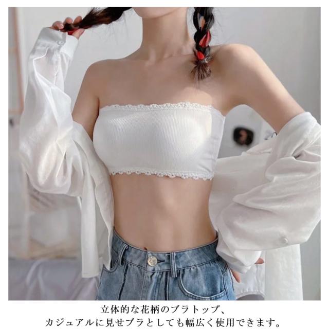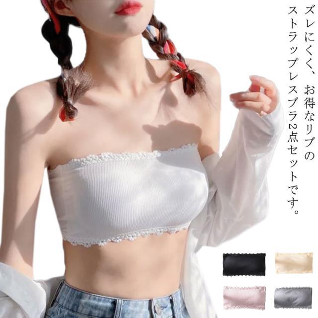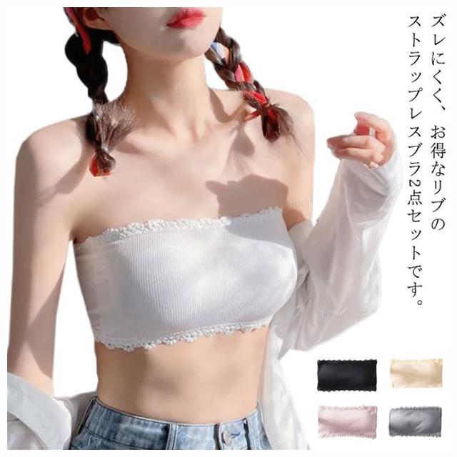 チラ見防止 リブ 綿 チューブトップ 紐なし ブラジャー ストラップレスブラ ドレス下着 ノンワイヤー 見せブラ 2点セット ストレスフリー かわいい 花柄 M L XL 取り外し可能カップ 送料無料