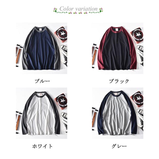 ラグラン ロングスリーブ Tシャツ ロンT カットソー メンズ レディース ラグランTシャツ ベースボールtシャツ 無地 ラグランスリーブ 配色 クルーネック ユニフォーム ブルー ブラック ホワイト グレー 送料無料