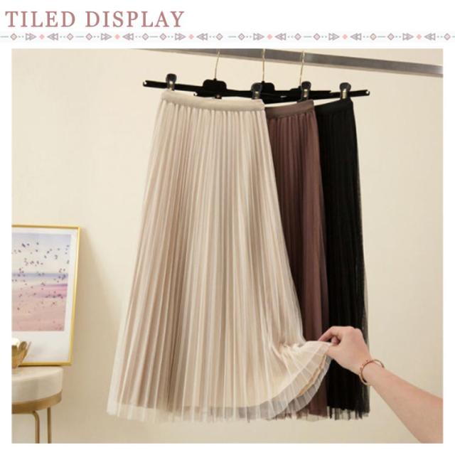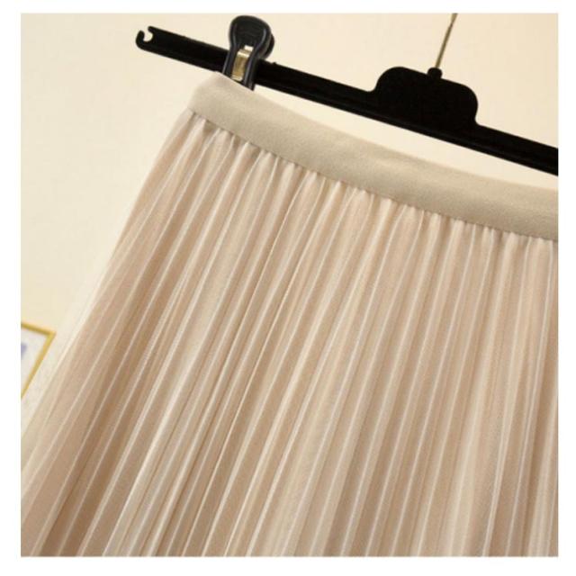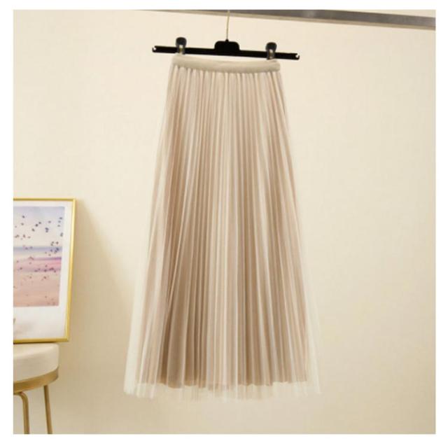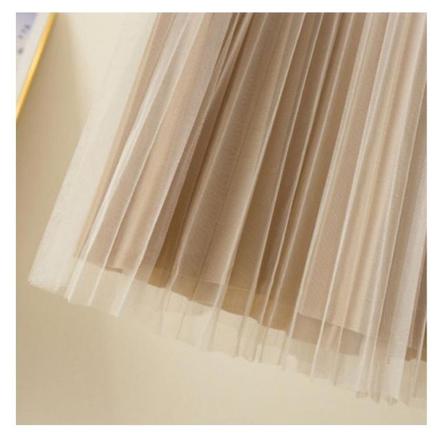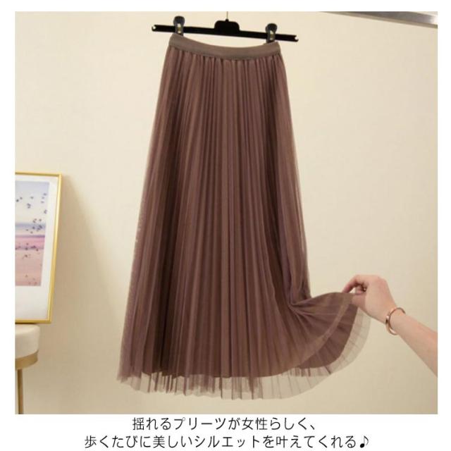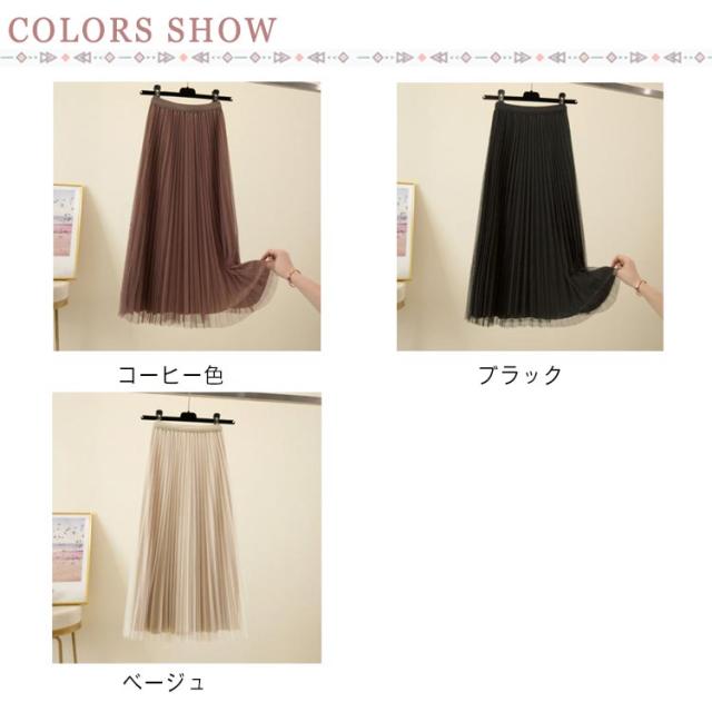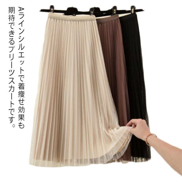 プリーツスカート チュールスカート ロングスカート Aライン ミモレ丈 ウエストゴム 体型カバー ふんわり 無地 キレイめ お洒落 通勤 普段着