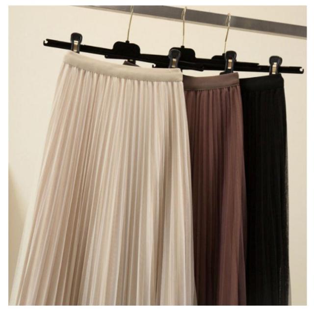 | Aラインシルエットで着痩せ効果も期待できるプリーツスカートです。 揺れるプリーツが女性らしく、歩くたびに美しいシルエットを叶えてくれる♪ しっかりとしたウエストゴム仕様で、2重なので透け感を防止してくれます。 Aラインシルエットでほっそりスタイリッシュに見せてくれます。 | |
