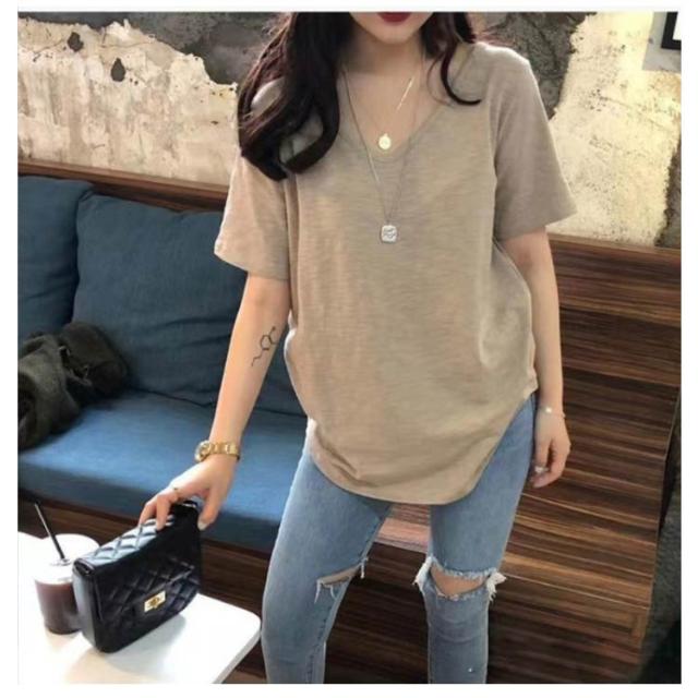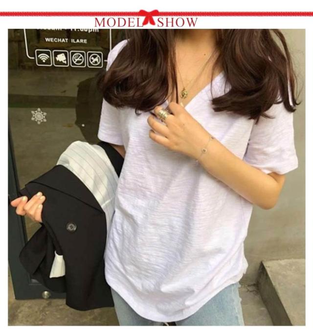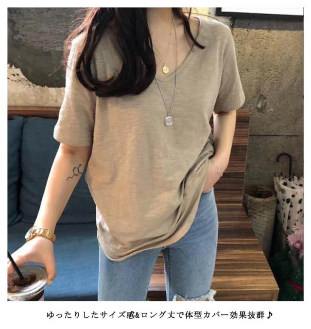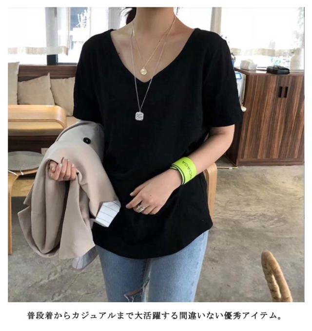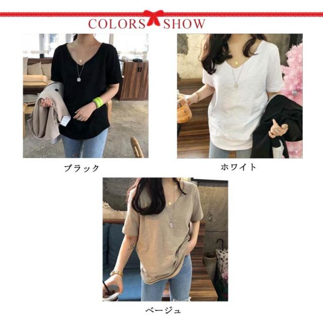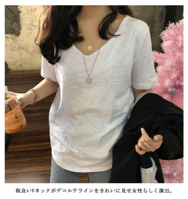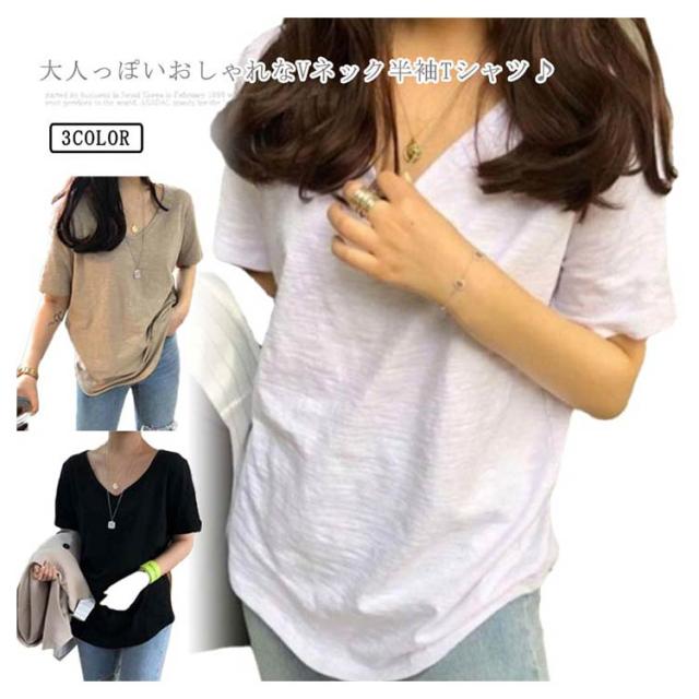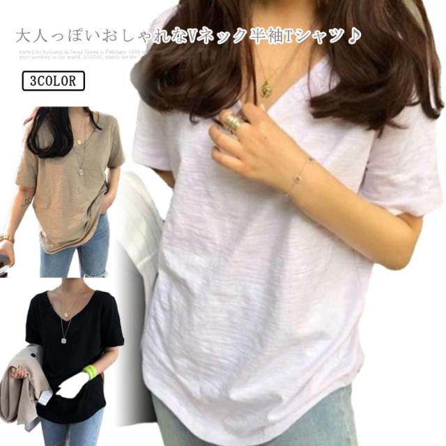 vネック tシャツ 半袖 レディース ロンt 半袖 tシャツ トップス カットソー ロンT 薄手 無地 ゆったり 体型カバー ゆるtシャツ カジュアル おしゃれ 着まわし 大きいサイズ 送料無料 ブラック ベージュ ホワイト S〜3XL