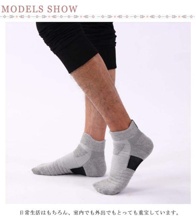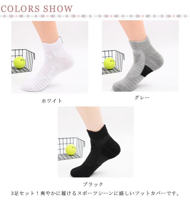 | 3足セット!爽やかに履けるスポーツシーンに嬉しいフットカバーです。 通気性が優れているので、さらりとした履き心地で一日中快適です。 かかとをしつかリ包み込み、運動中でも落ちにくいで履き心地が最高! 伸縮性のある履き口は締め付けがなく、足首を程よくホールドしてズレません。 日常生活はもちろん、室内でも外出でもとっても重宝しています。 | |