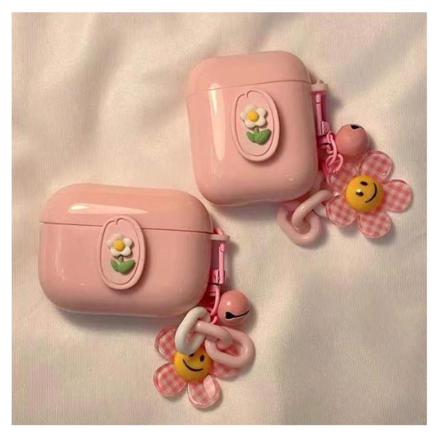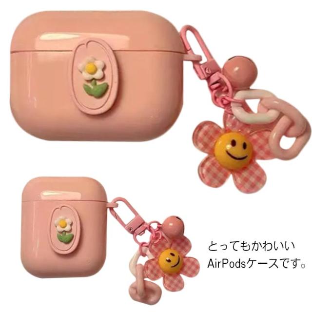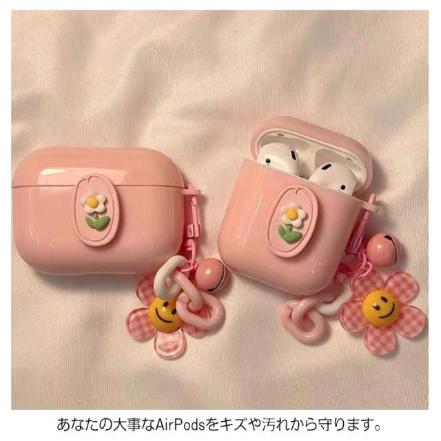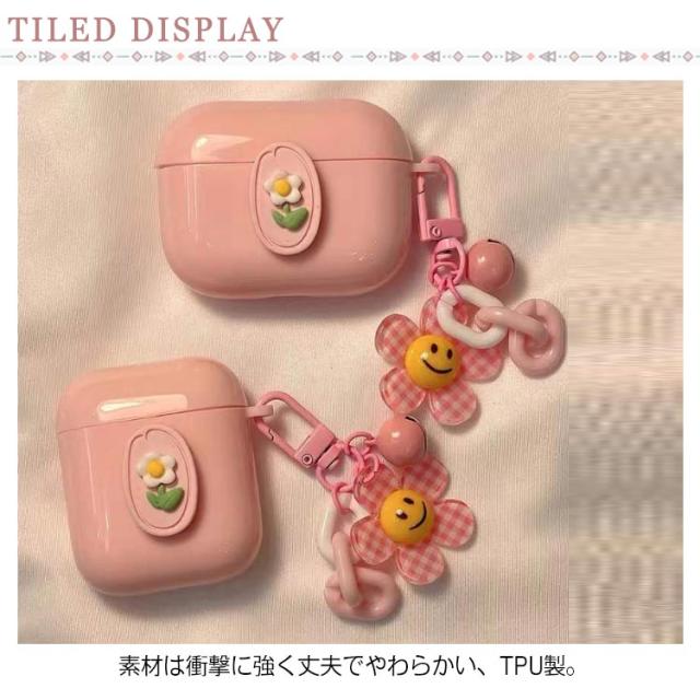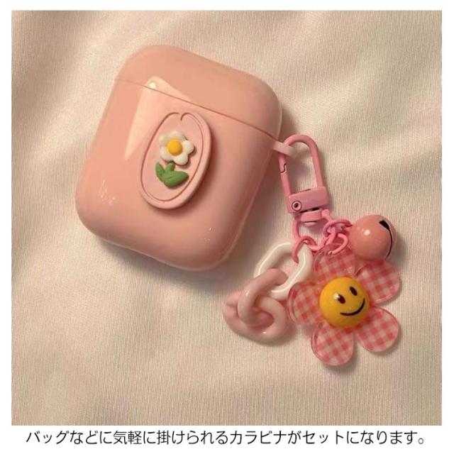 チャーム ケース お花 1/2/3/Pro カラビナ付き プロ 可愛い カバー エアーポッズ カバー 第1/2/3世代 保護 ソフト ケース かわいい おしゃれ 耐衝撃 フラワー 女子 イヤホンケース AirPods