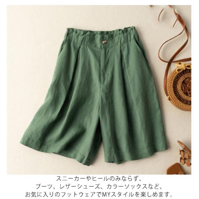 コットン リネン ショートパンツ シンプル 春 夏 綿麻ショートパンツ 綿 麻 ショート ショーパン カジュアル パンツ 美脚 ワイドパンツ レディース パンツ 夏 夏服 きれいめ 麻 大人 シンプル 送料無料